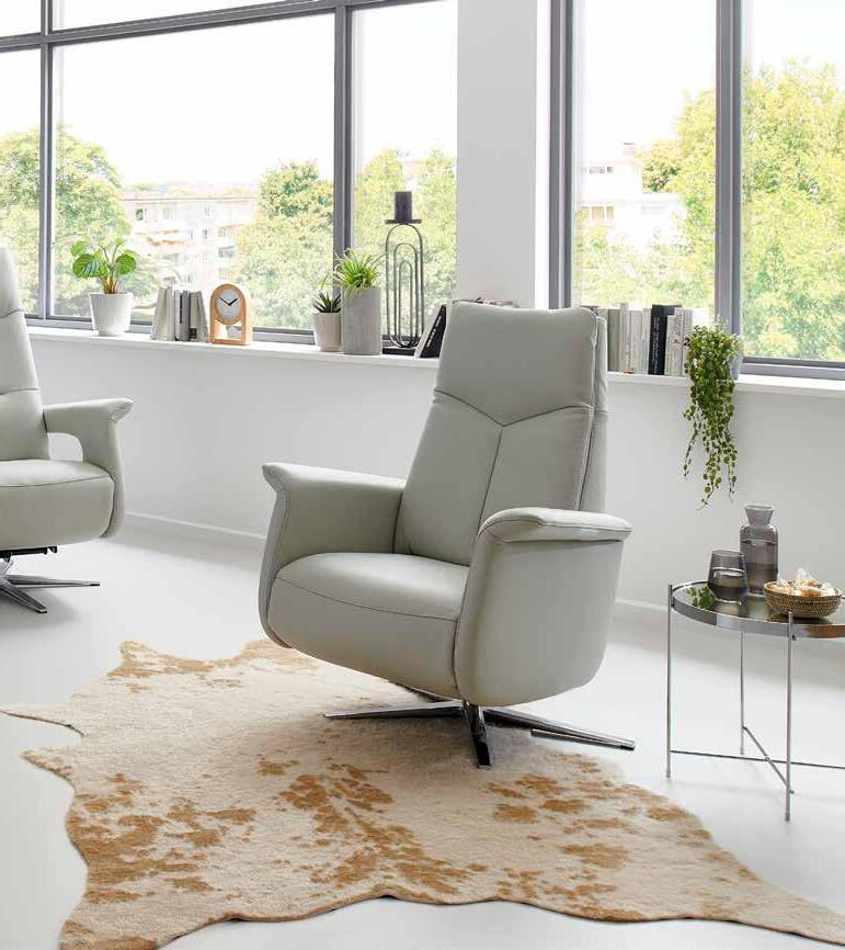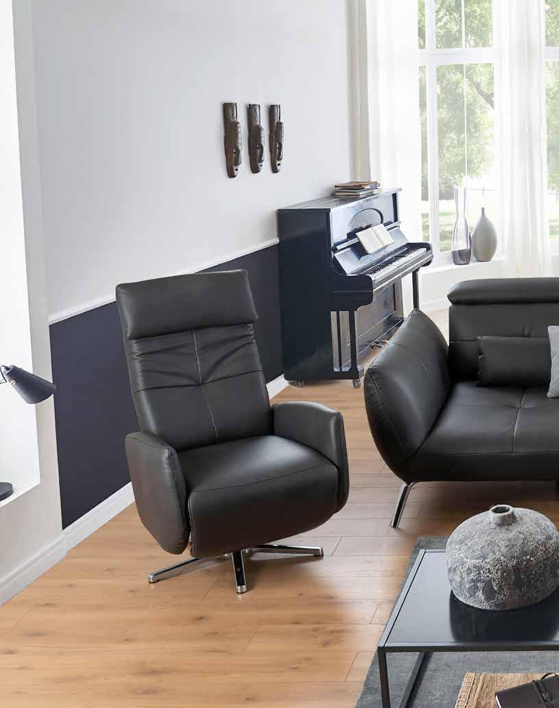 9 Relaxsessel in echt Leder mit manueller Funktion, Sterndrehfuß chrome, Ergonomiegröße „M“