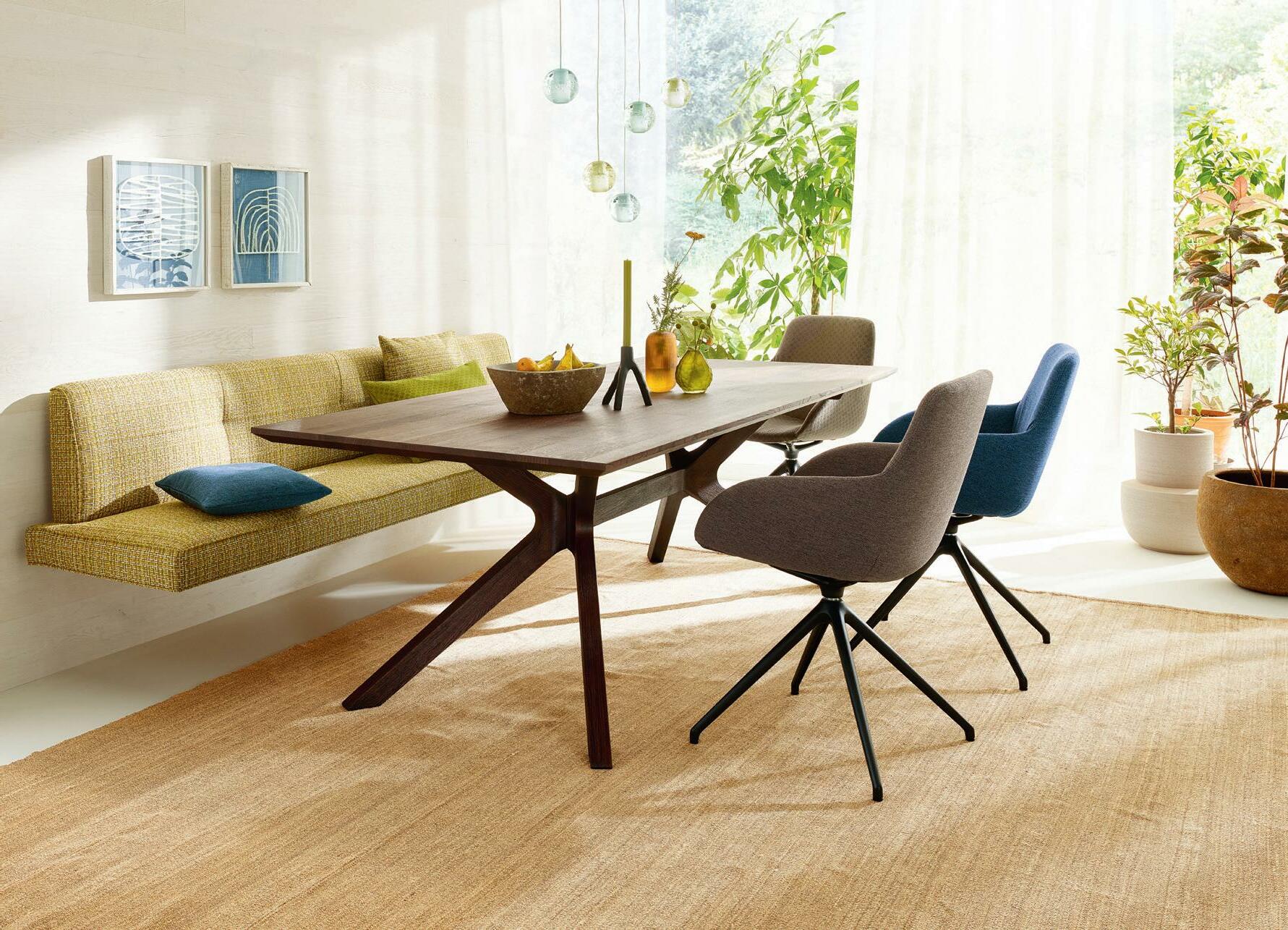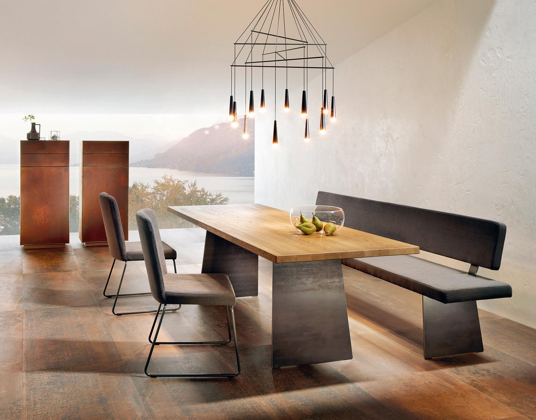 Neben einem Tisch wie VIVO, mit allen Vieren fest auf der Erde, kann man sich als Bank ruhig ein bisschen zurücklehnen und auf Bodenhaftung verzichten.