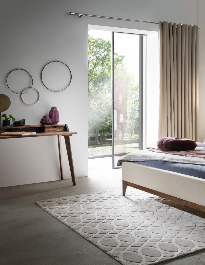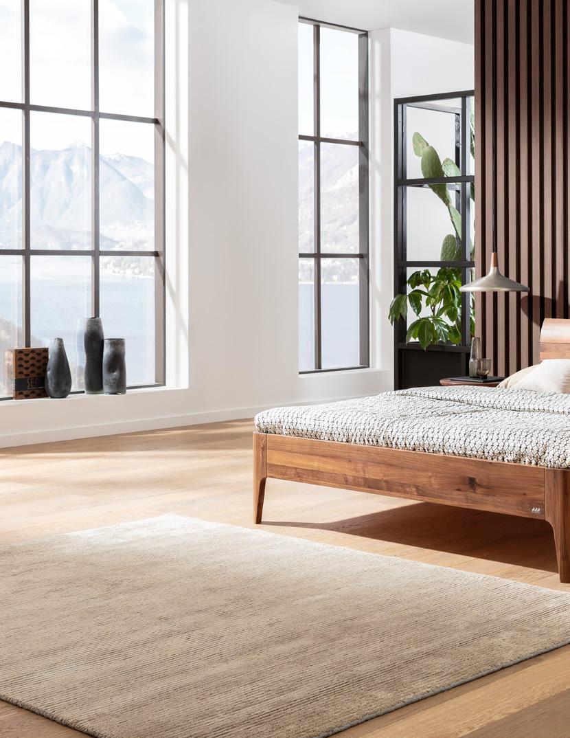 Unsere junge Linie Lounge zeichnet sich durch die feinen Details aus, die das besondere Augenmerk auf die schmalen Füsse und die runden Eckelemente legen. Die stilvollen Fusselemente heben sich leicht vom Rahmenprofil ab und verleihen jedem Bett der Linie Lounge eine besondere Note. Wir geben Ihnen die Möglichkeit, Ihr Traumbett nach Ihren Vorstellungen zusammenzustellen und dabei mit verschiedenen Materialien zu spielen. Von der natürlichen Schönheit der Buche über die zeitlose Eleganz der Eiche bis hin zum edlen Charakter des Nussbaums - Lounge bietet eine breite Palette an Optionen, um Ihren individuellen Geschmack und Stil zum Ausdruck zu bringen. Egal für welches Holz Sie sich entscheiden, jedes Material strahlt eine einzigartige Anmut aus, die Ihr Schlafzimmer in einen Ort der Ruhe und Erholung verwandeln.