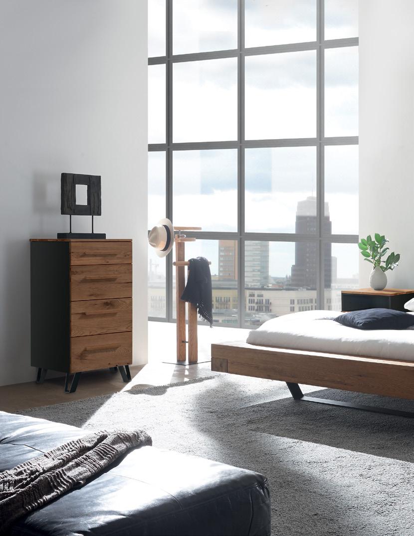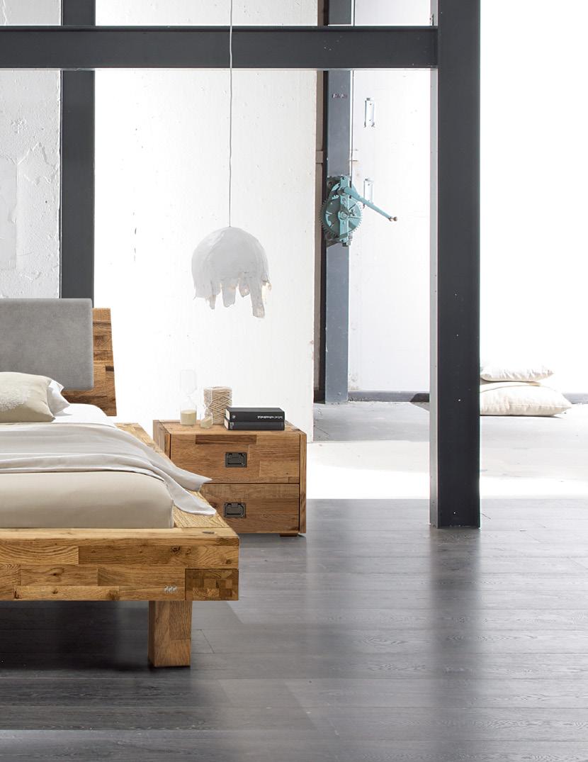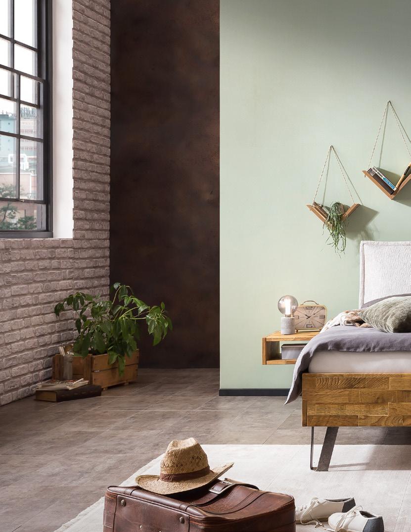 Heute sind Loftwohnungen nicht mehr improvisierte Wohnungen, sondern entstehen durch aufwendige Renovierung und Modernisierung alter Industriehallen und werden damit oft zu sehr teuren Wohnungen auf dem Immobilienmarkt. Robust, schroff, mit dekorativen Metallbeschlägen und natürlichen Unregelmässigkeiten: der unkonventionelle Fabrikhallen-Stil unserer Factory-Line taucht jedes Schlafzimmer in ein aussergewöhnlich urbanes Flair. Für alle, die es etwas rauer mögen und diejenigen, die auf konventionelle Holzfarben im Schlafzimmer verzichten wollen, bieten wir mit unserem speziell bearbeiteten Akazienholz das gewisse Extra in Ihrer Schlafoase. Akazienholz ist besonders fest und übertrifft in seiner Dichte sogar das bekannte Eichenholz. Zudem ist Akazienholz sehr langlebig und wasserbeständig. Unbehandeltes Akazienholz hält bis zu 40 Jahre, lasiert und gut gepflegt sogar noch länger. Die Oberfläche des massiven Akazienholzes wird unregelmässig verleimt, dadurch entsteht dieser einzigartige Factory-Look.