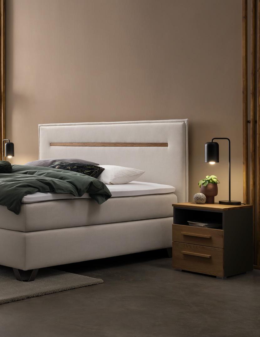 Unsere Oak-Line bietet Ihnen nicht nur Betten, sondern auch eine breite Auswahl an Beimöbeln. Diese ermöglichen es Ihnen, Ihr Schlafzimmer ganzheitlich einzurichten und einen harmonischen Gesamteindruck zu erzielen. Jedes dieser Beimöbel ist so konzipiert, dass es perfekt zu den Betten der Oak-Line passt und ein einheitliches und stilvolles Ambiente schafft.