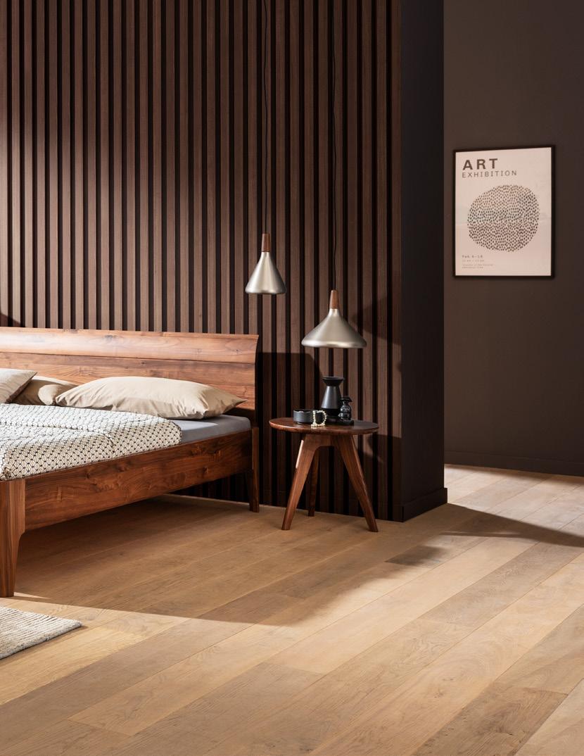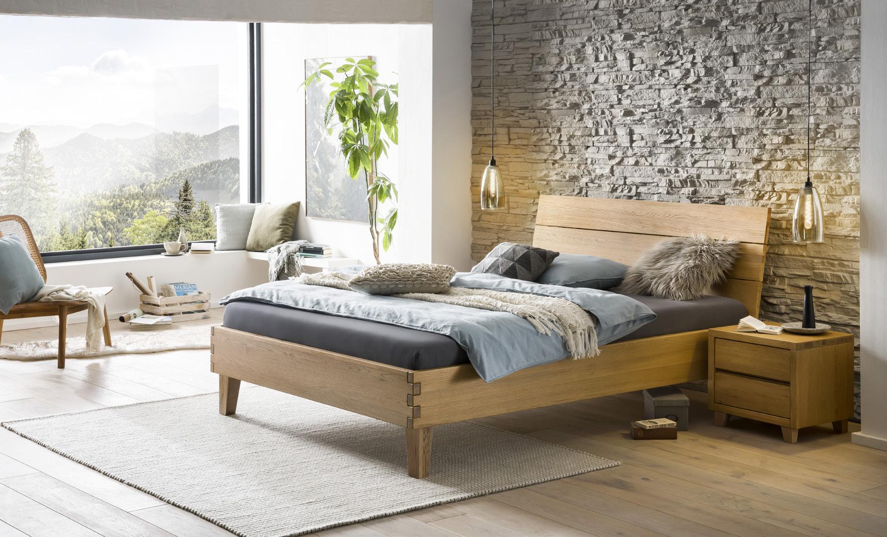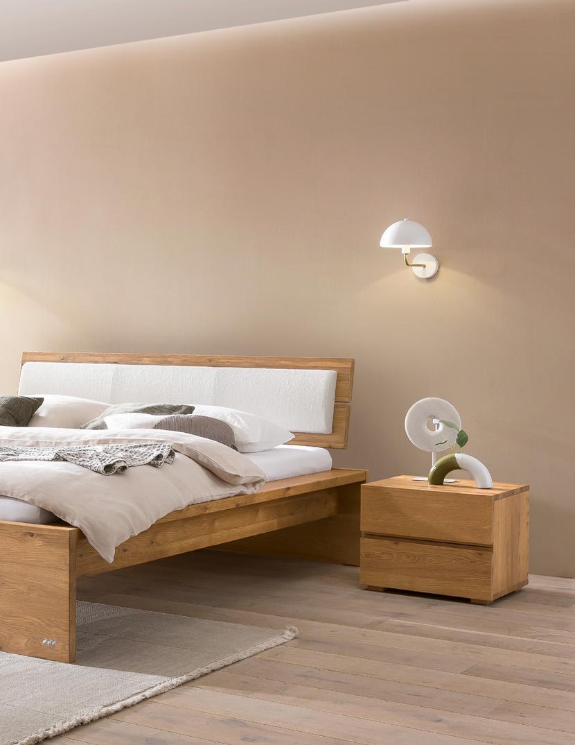 Entdecken Sie die Welt der Oak-Line - Betten aus wohlgeformtem Eichenholz, die Ihnen Geborgenheit und Beständigkeit für eine geruhsame Nacht bieten.