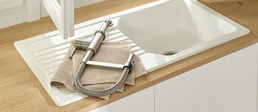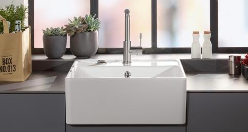 Bestellen Sie eine Keramikspüle aus dem bestehenden Sortiment im Set mit einer Armatur & Zubehör für die Ausstellung und erhalten einen Ausstellungsrabatt von 65%*