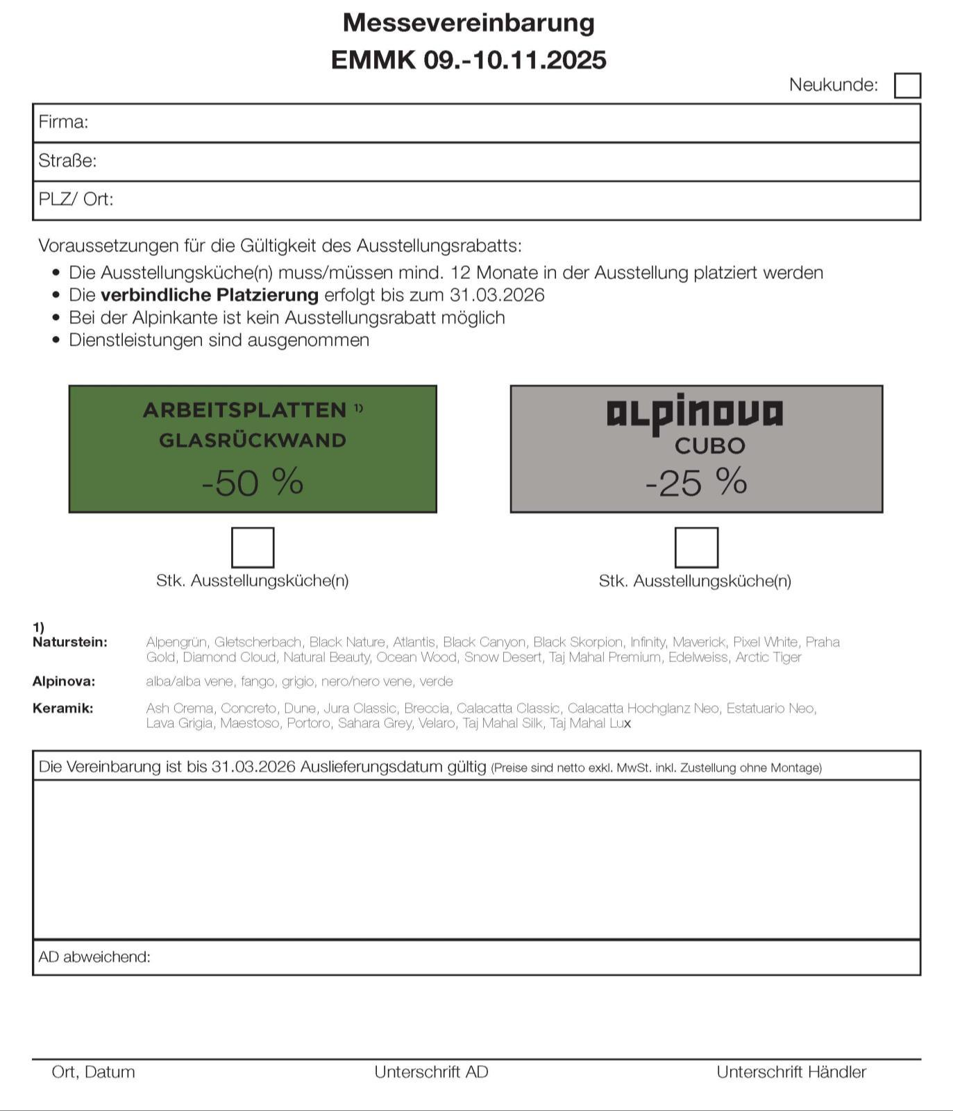 Dieses Messeangebot ist ausschließlich im Rahmen der EMMK-Messe gültig.