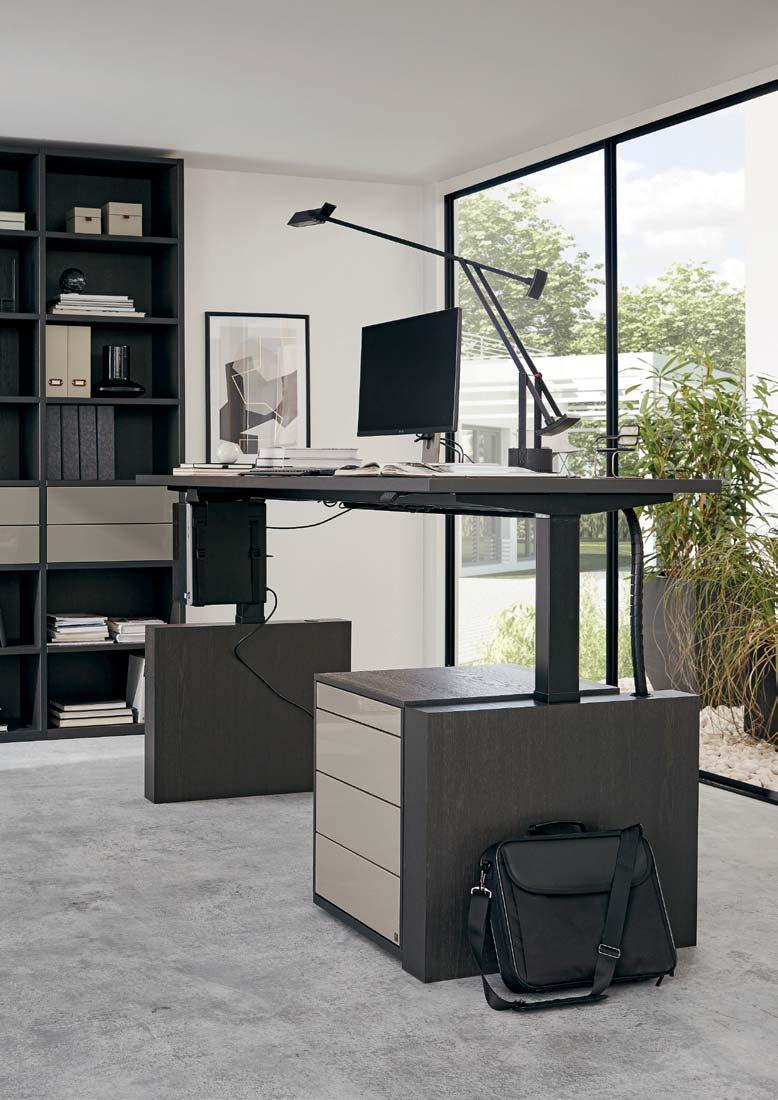 elektrisch höhenverstellbar, in Eiche graphit, ca. 200 x 80, H 70 –114 cm; Rollcontainer KARA-FRAME in Lack platingrau