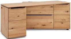 Ein Möbel, zwei Nutzungsmöglichkeiten: Unsere Massivholzserien PUERTO und PORTLAND bieten jeweils ein raffiniertes Sideboard, dessen Oberboden sich ausschwenken lässt und so zu einer Schreibtischplatte wird. Das geschlossene Element, das zusammen mit der Platte seine Position verändert, übernimmt nun die Funktion eines klassischen Rollcontainers. Neben Schublade und Tür ist es mit einem