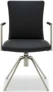 Stuhl HELMOND in Leder Toledo (1) nero, Gestell schwarz mit Rollen, ca. B 55, H 91, T 58 cm