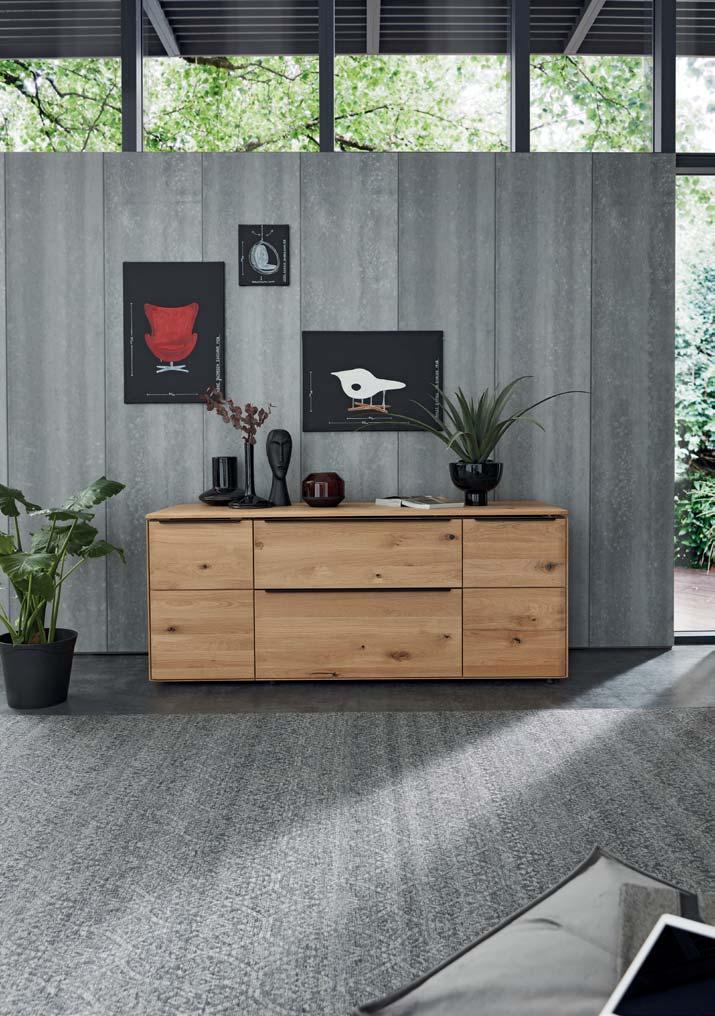 Ein cleveres Homeoffice ist auf den ersten Blick oft gar nicht als Arbeitsplatz erkennbar. Wie wäre es mit einem Sideboard, das sich mit wenigen Handgriffen in einen praktischen Schreibtisch verwandeln lässt? Diese Lösung ist nicht nur platzsparend, die wunderschönen Massivholzoberflächen vermitteln auch viel Wärme und Behaglichkeit. Ein echtes Schmuckstück innerhalb der Einrichtung!