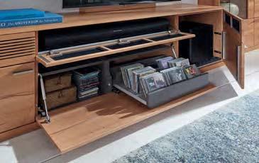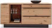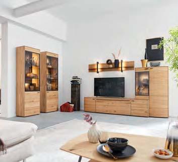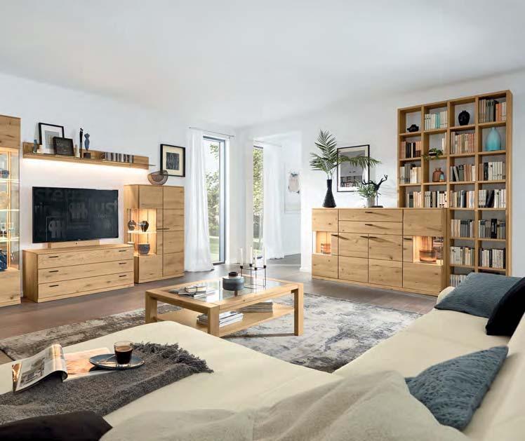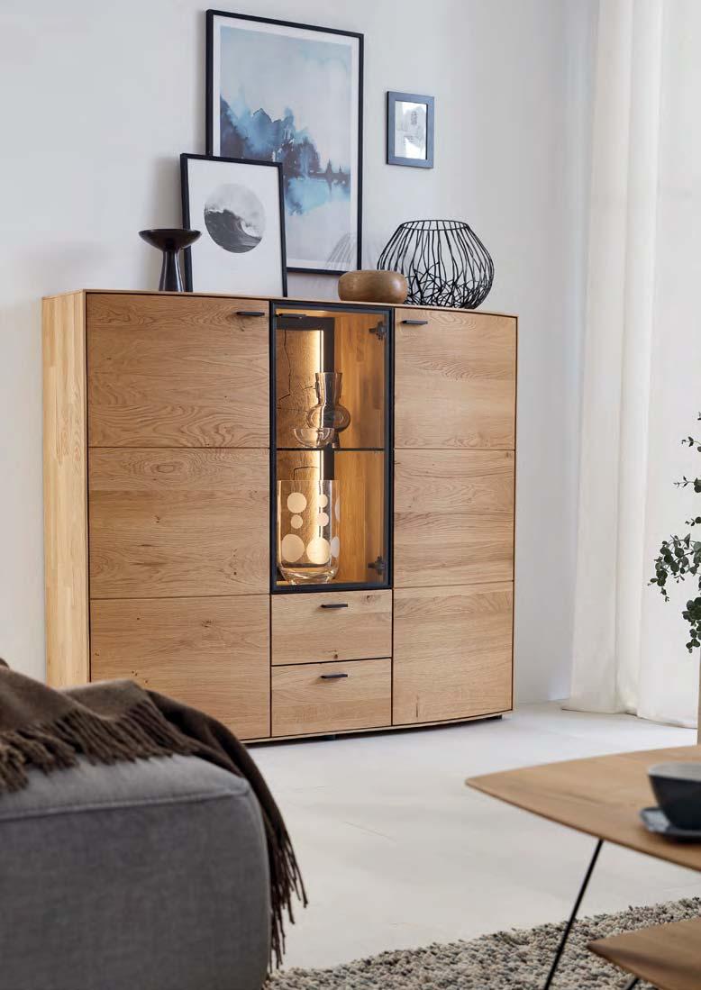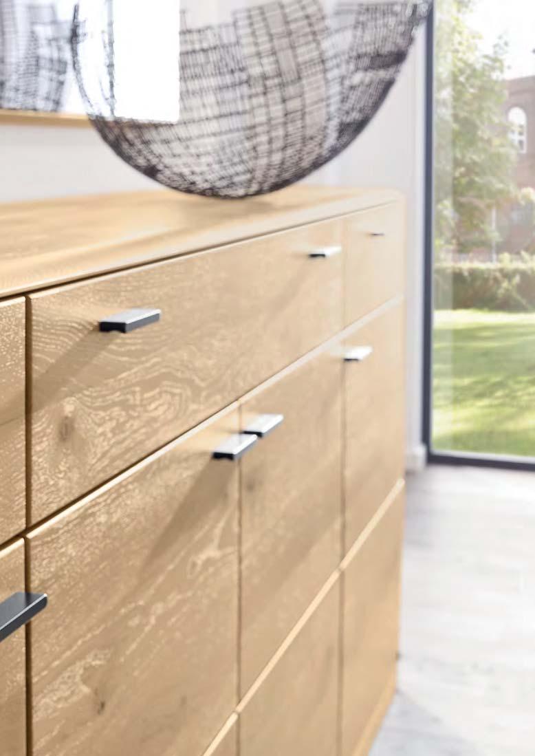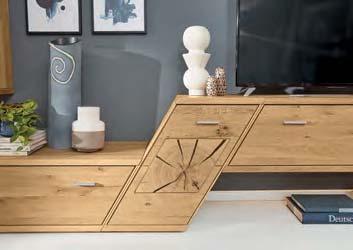 Holz ist ein faszinierender Werkstoff. Naturmerkmale und kleine Unvollkommenheiten wie Risse, Astlöcher und Furchen machen seinen unnachahmlichen Reiz aus. Auch die Jahresringe erzählen die individuelle Lebensgeschichte des Baumes – und TREVIO macht sie sichtbar. Abschlussseiten in Hirnholz zeigen einen beeindruckenden Querschnitt durch den Stamm. Auch mit Applikationen in Riffholz setzt das vollmassive Wohnprogramm markante Akzente. Jedes Möbelstück stellt somit ein hochwertiges Unikat dar.