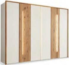 Drehtürenschrank JOVANNA in Lack weiß, Absetzung Wildeiche massiv, ca. B 299, H 222, T 64 cm