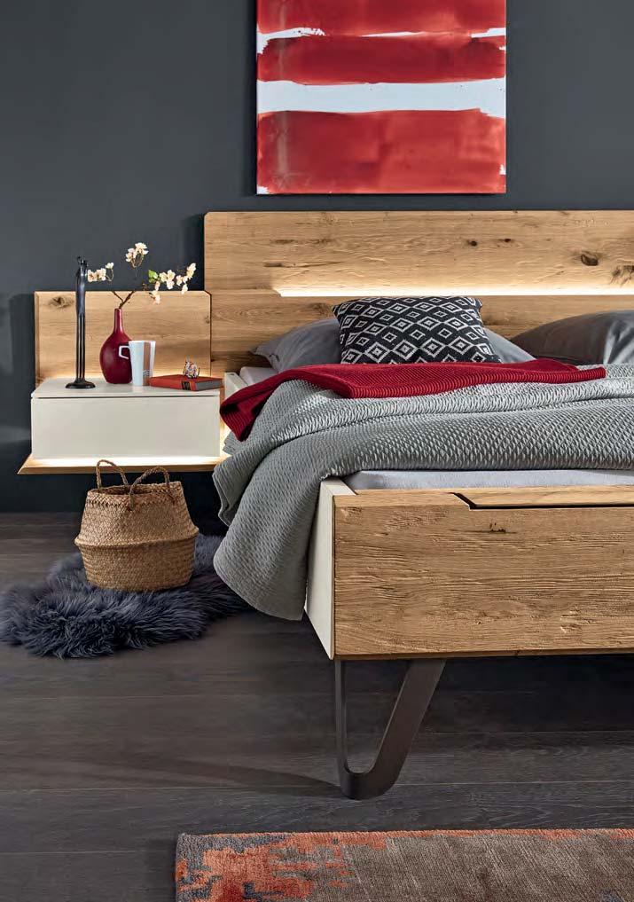 Schlafzimmer JOLINE in Lack graphit / Absetzungen Wildeiche massiv gebürstet und lackiert mit Spaltholz ab S. 48