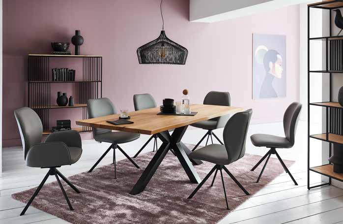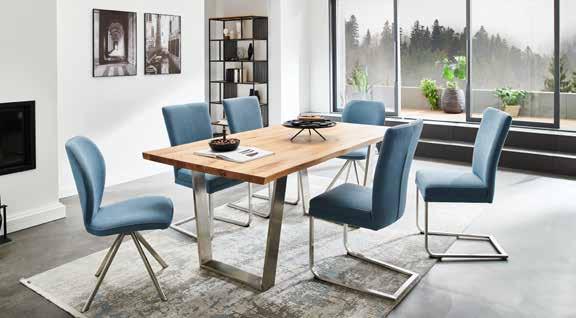 2 Holzarten mit Baumkante lieferbar Charakter-Eiche massiv geölt oder Barock-Eiche massiv, urwüchsig mit Ästen 5 Tischgestellvarianten zur Wahl in Edelstahl gebürstet und Eisen schwarz