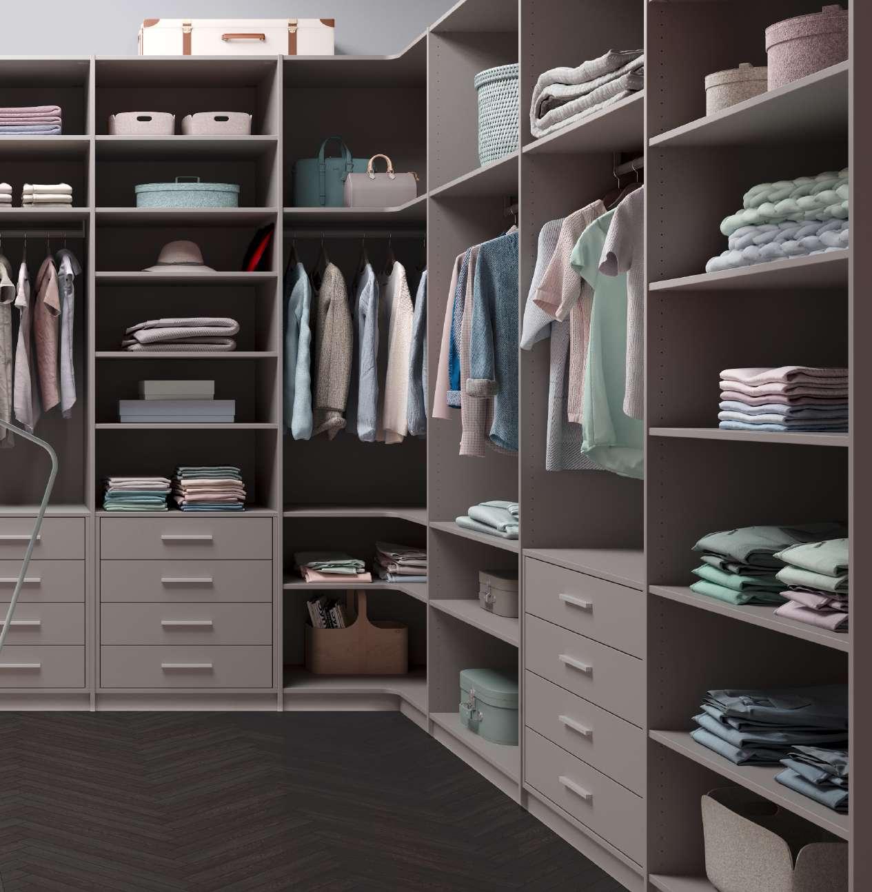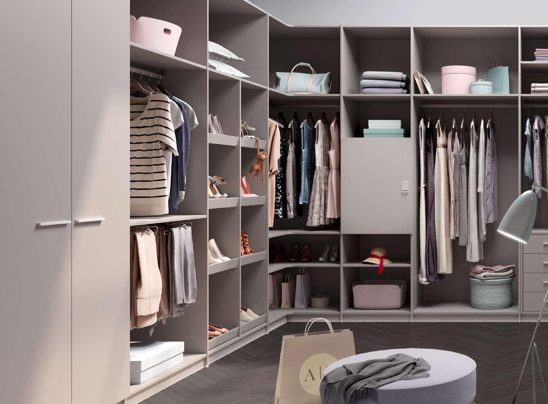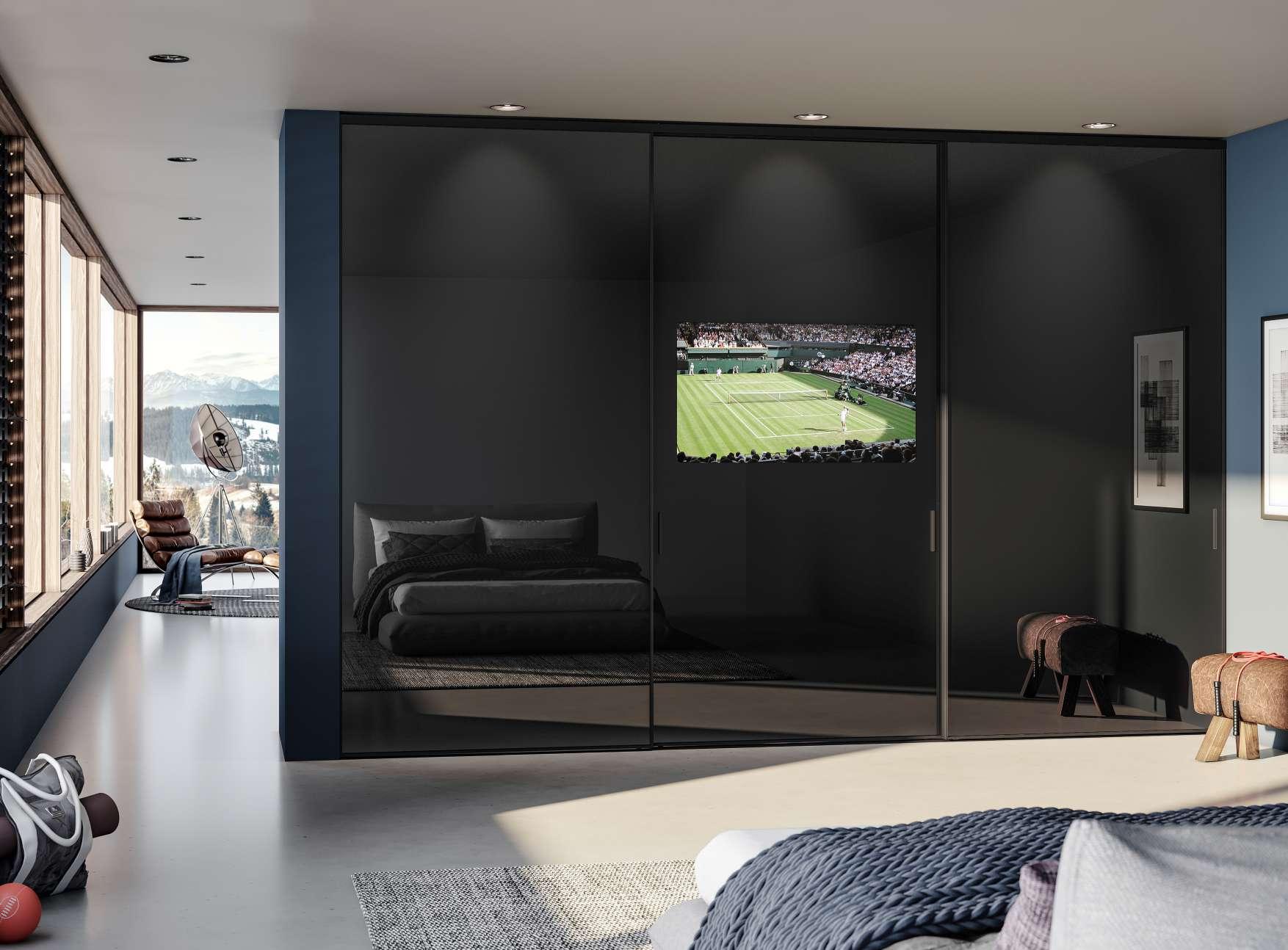Hier behalten Sie immer den Durchblick, denn Kleidung, Schuhe und Accessoires finden maßgeschneiderten Stauraum, der alles stets in Reichweite und Bestform hält. Mit klug strukturiertem Platz ist es keine Kunst, die einmal definierte Ordnung zu halten. Das Ergebnis kann sich jederzeit sehen lassen – am schönsten durch unsere eleganten Gleittüren mit Klarglas-Füllung.