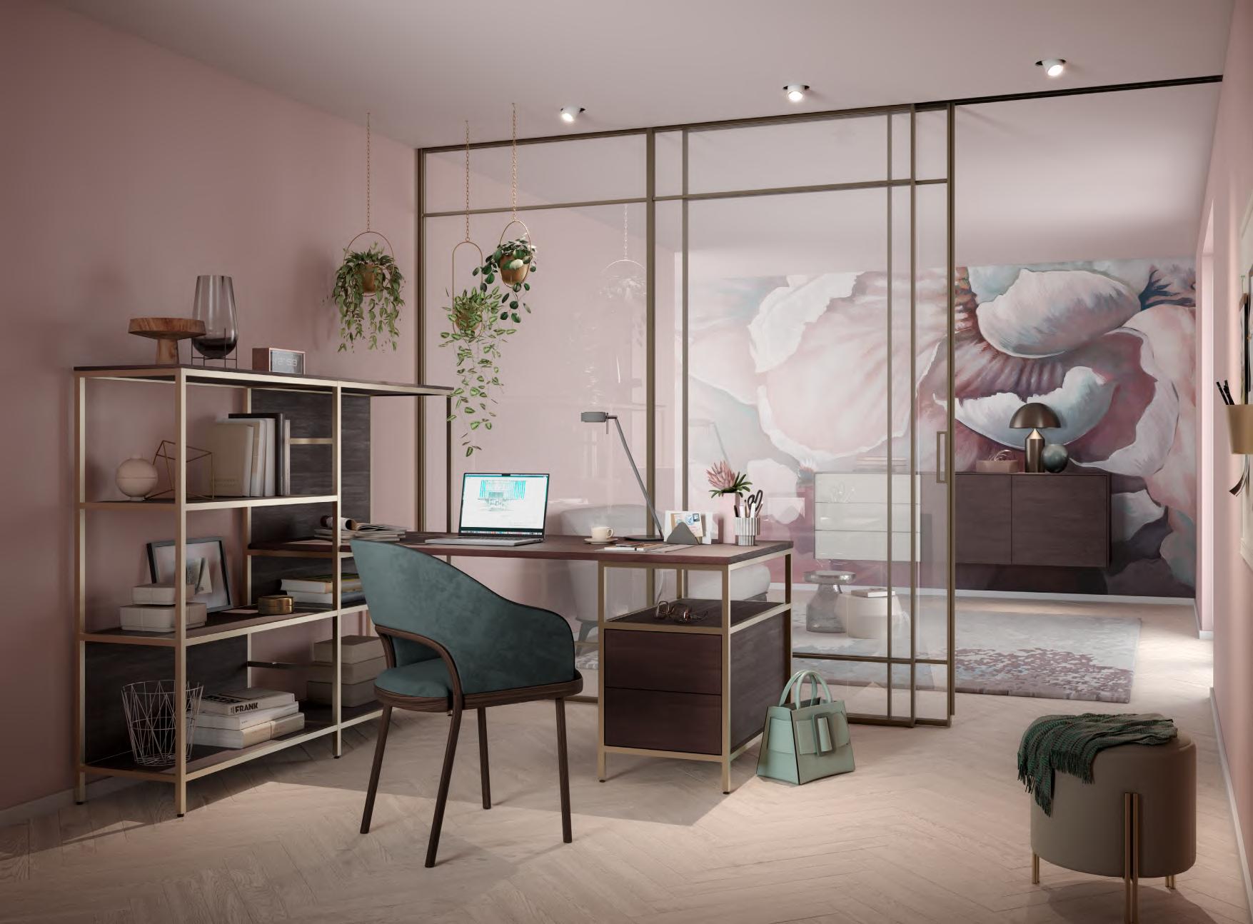 Mit Hilfe der raumplus Vielfalt lassen sich die unterschiedlichsten Raumgrößen proportional optimal in Szene setzen – von hellen Farben und luftigen Materialien für kleine Räume bis hin zu dunklen Türfüllungen und Rahmen in größeren Räumen oder Büros.