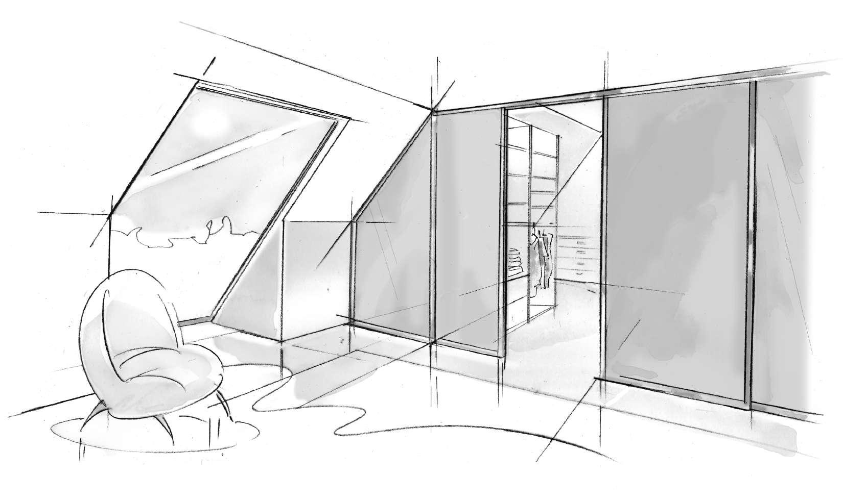 Dachgeschosse bieten eine einzigartige Wohnatmosphäre. Sie clever einzurichten und dabei vor allem den Raum unter der Dachschräge effektiv zu nutzen, bringt jedoch gewisse Herausforderungen mit sich. Die Gleittüren von raumplus bieten individuell anpassbare Lösungen. Egal, ob eine flache oder steile Neigung – die Türen ziehen in jedem Fall mit, und es entsteht ein schönes Spiel aus parallelen Linien, das Sie zusätzlich in der Oberflächengestaltung variieren können. Entdecken Sie Ihre Vorlieben.