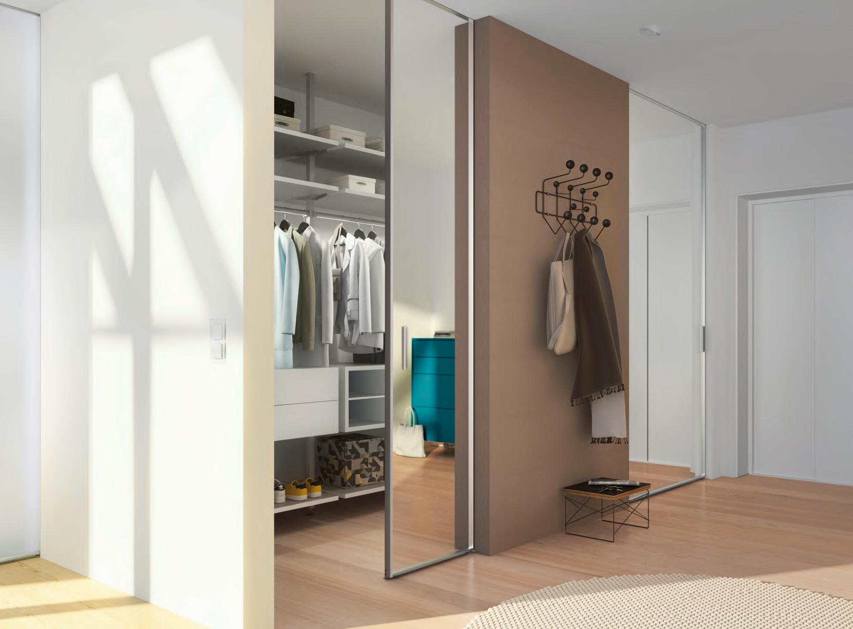 Inspiration and an overview; the joy of combining items and easy access – walk-in closets provide the convenience that makes getting dressed a great experience. raumplus sliding doors conceal exclusive interior systems that ensure everything is to hand – with pull-out rails and shelves; lights and lifts; drawers and mirrors; plus many other fixtures and fittings. Making choosing an outfit an absolute pleasure – day after day and no matter what the occasion.