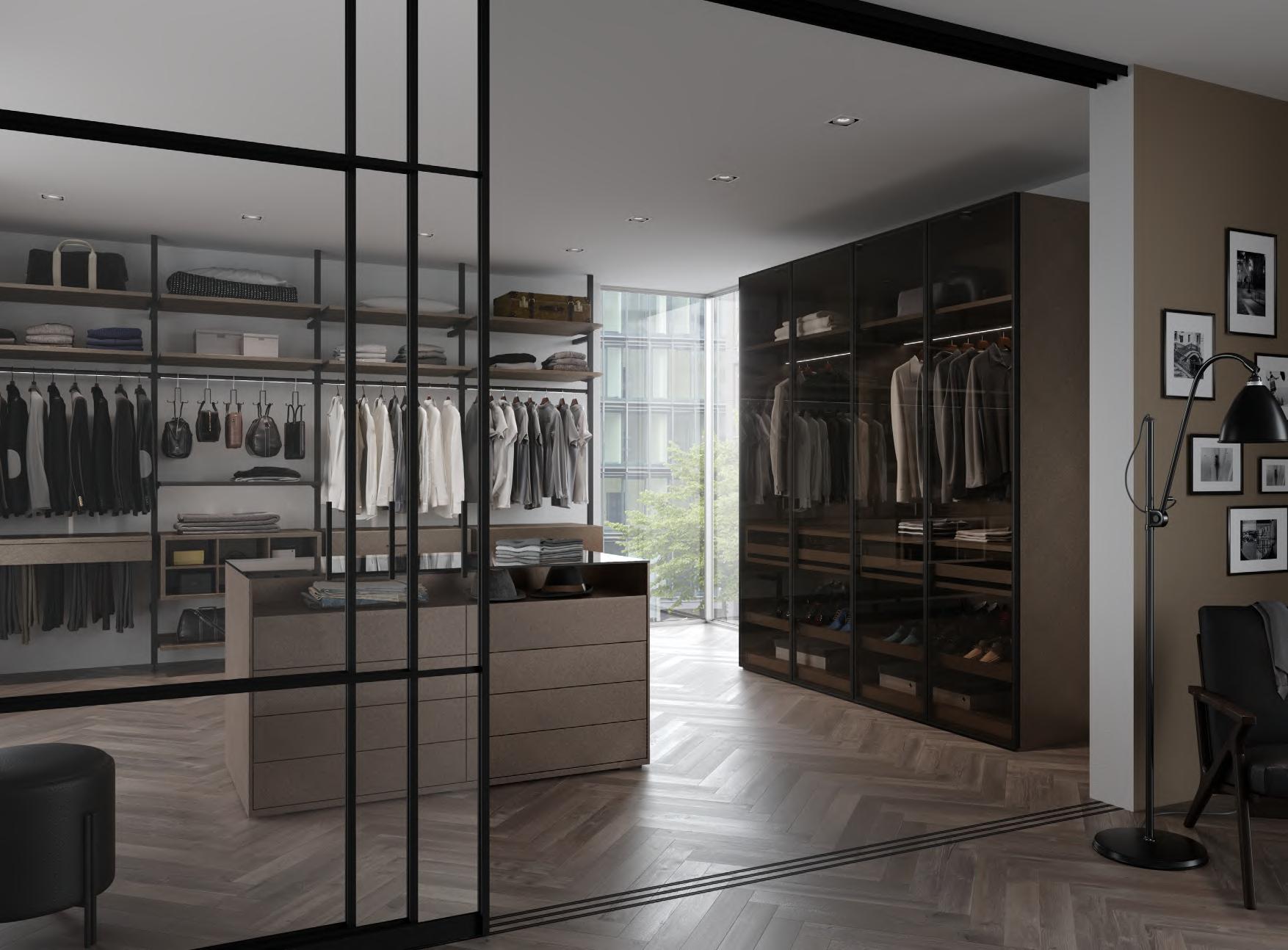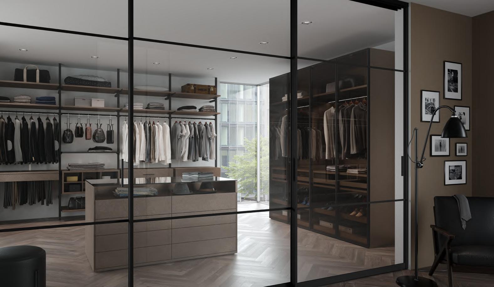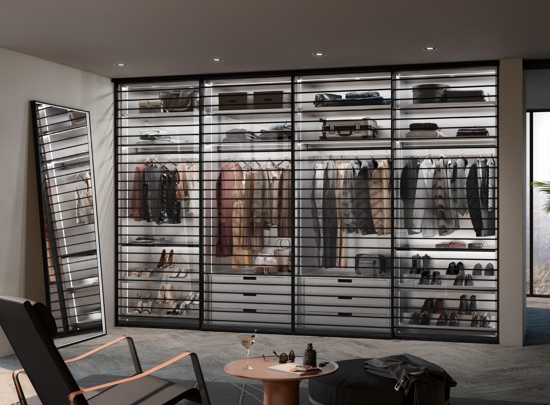 Here you‘ll always keep an eye on things, because clothes, shoes and accessories will find tailor-made storage space that keeps everything within reach and in top shape at all times. With cleverly structured space, it´s no art to keep the order once defined. The result can always be seen – most beautifully through our elegant sliding doors with clear glass panels.