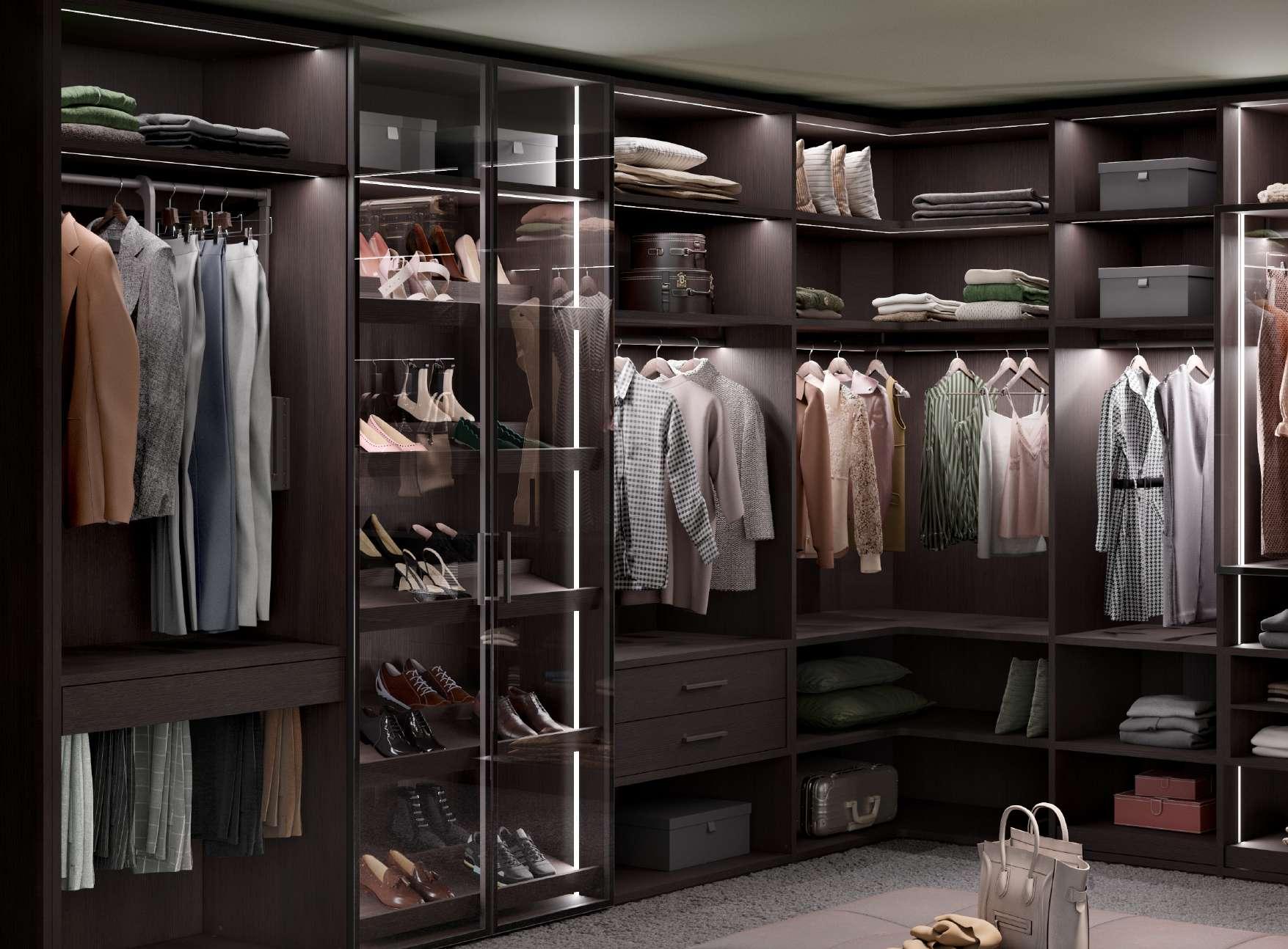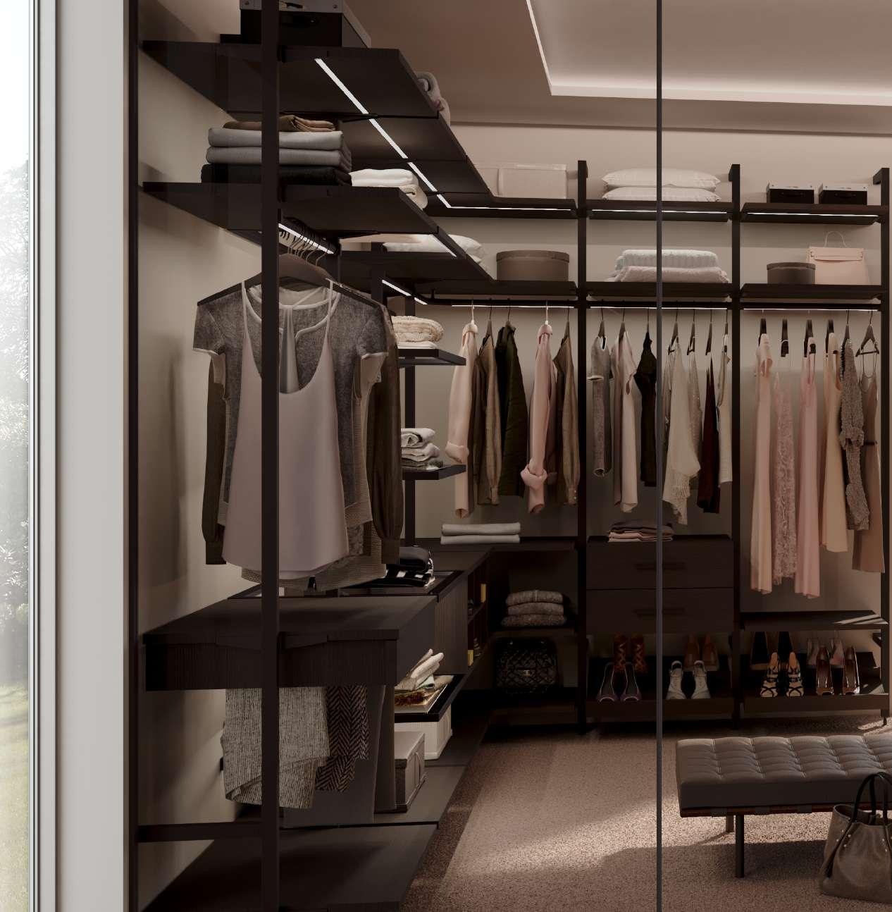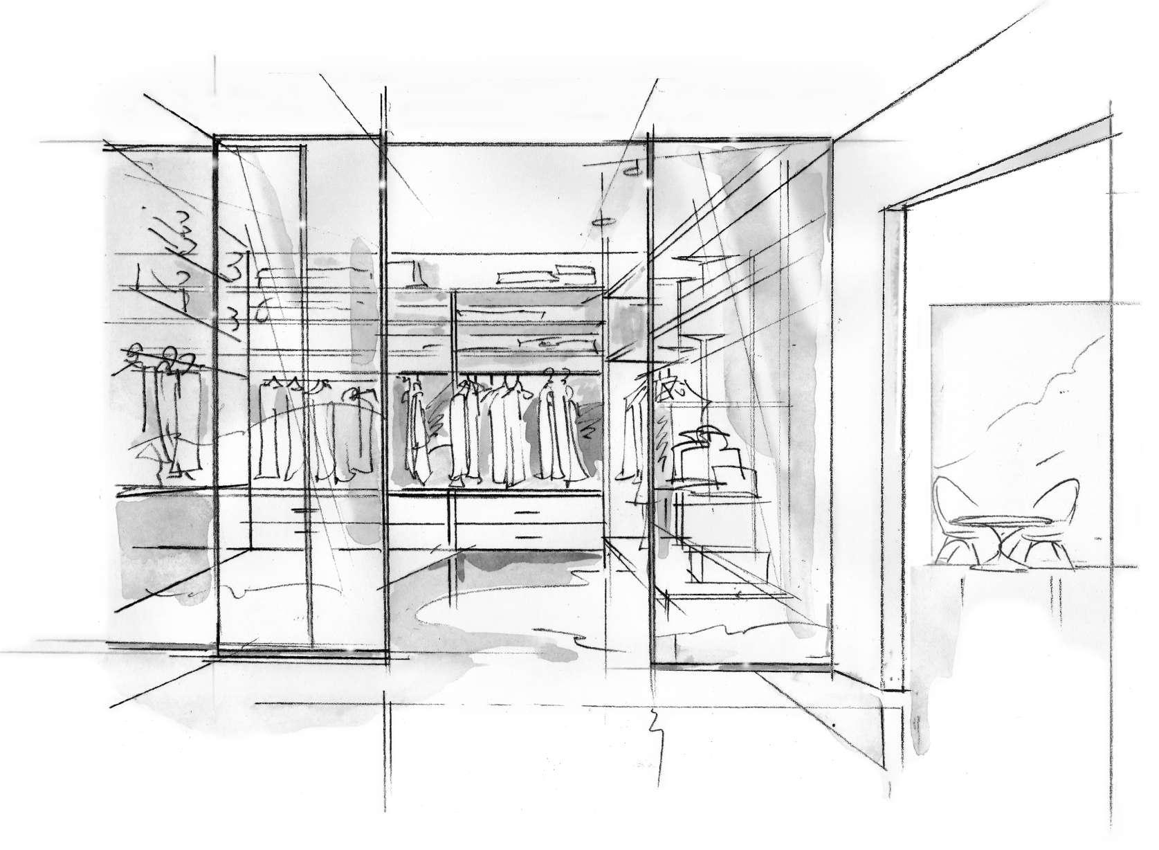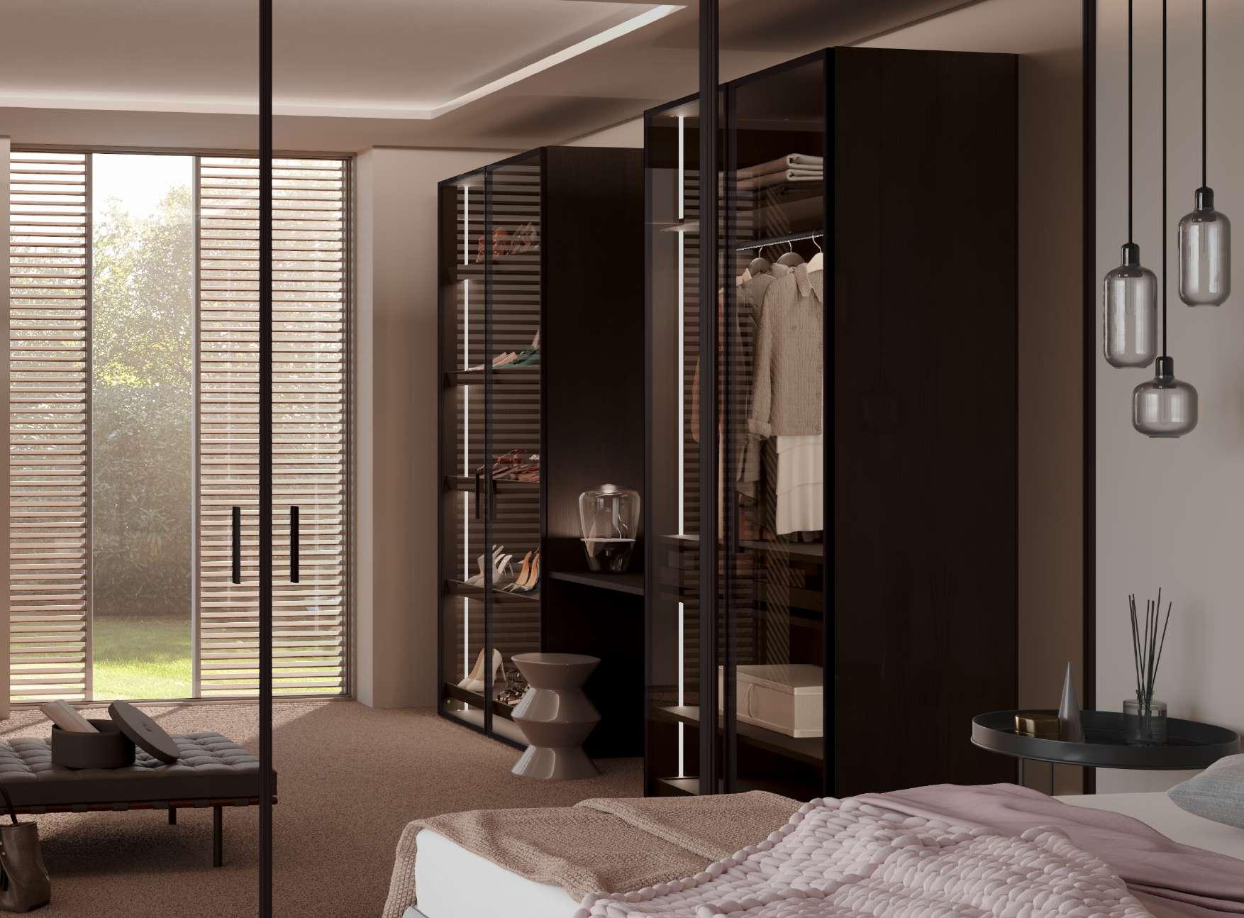 Here you‘ll always keep an eye on things, because clothes, shoes and accessories will find tailor-made storage space that keeps everything within reach and in top shape at all times. With cleverly structured space, it´s no art to keep the order once defined. The result can always be seen – most beautifully through our elegant sliding doors with clear glass panels.