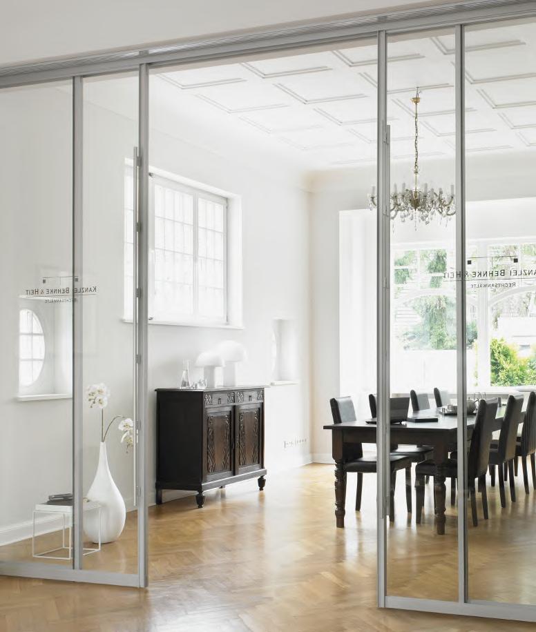 raumplus offers almost endless design freedom with regard to frame colors, panels and subdivisions by dividing rails for room dividers and sliding doors.