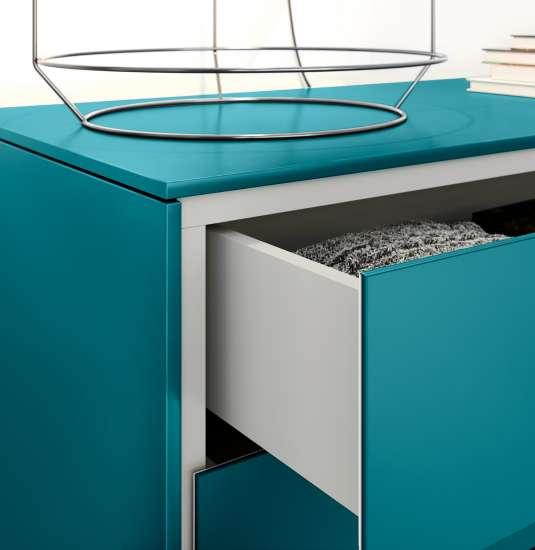 Mit ihren Beschlägen verfügen die Kommoden über innere Werte, die man zwar nicht sieht, dafür aber jeden Tag ganz komfortabel in Aktion erlebt. So genügt ein Fingerzeig, um Türen und Schubkästen mittels Push-to-open-Technik zu bedienen.