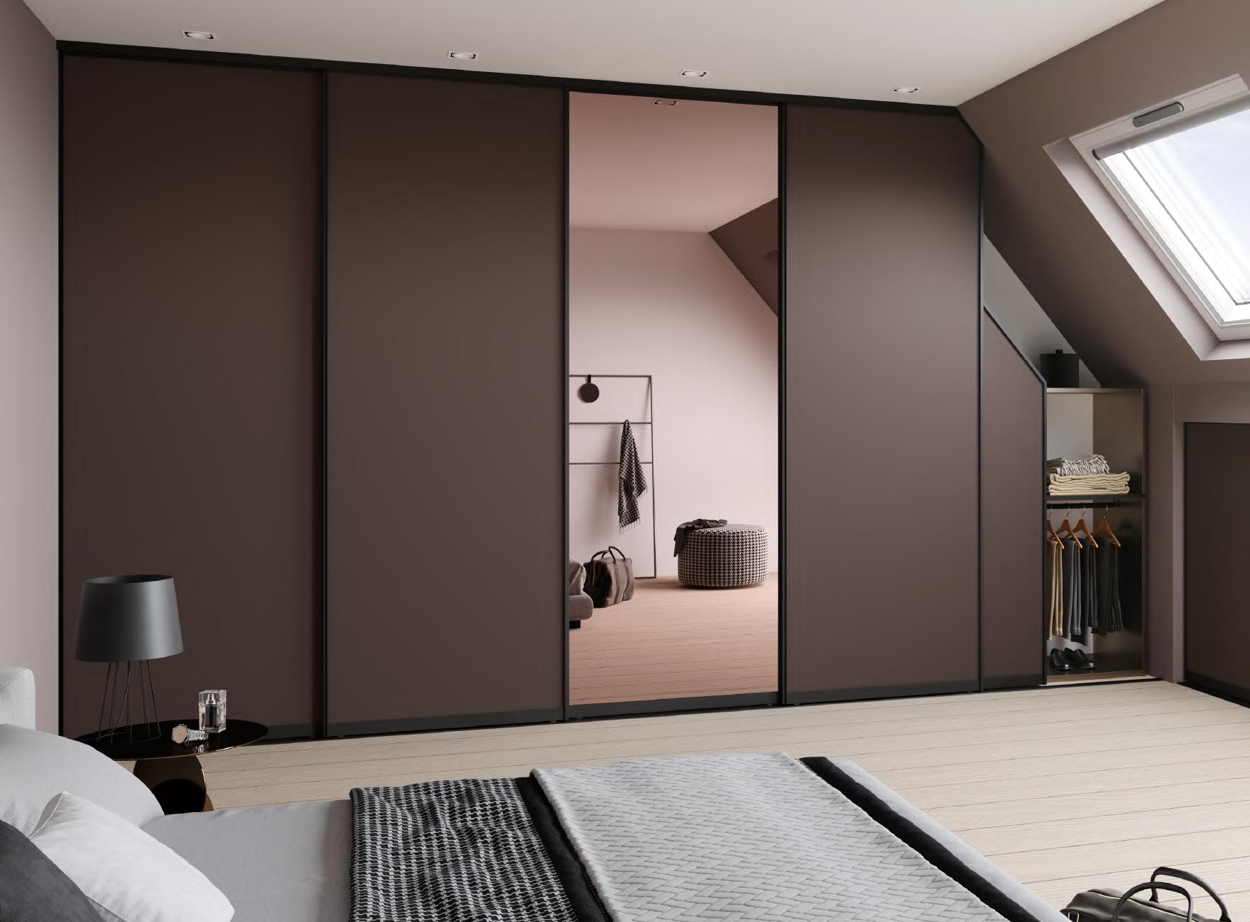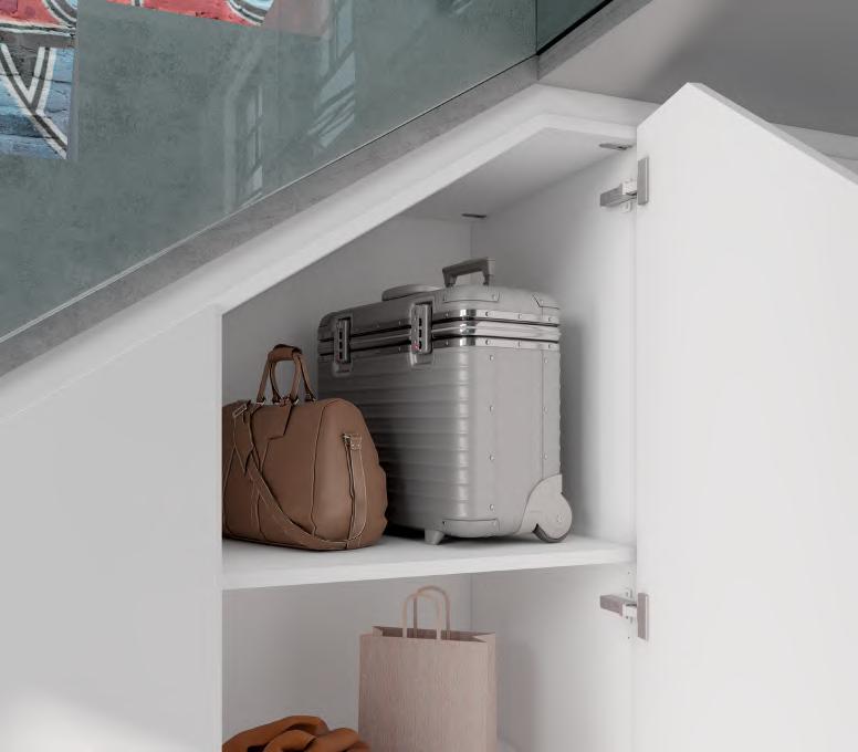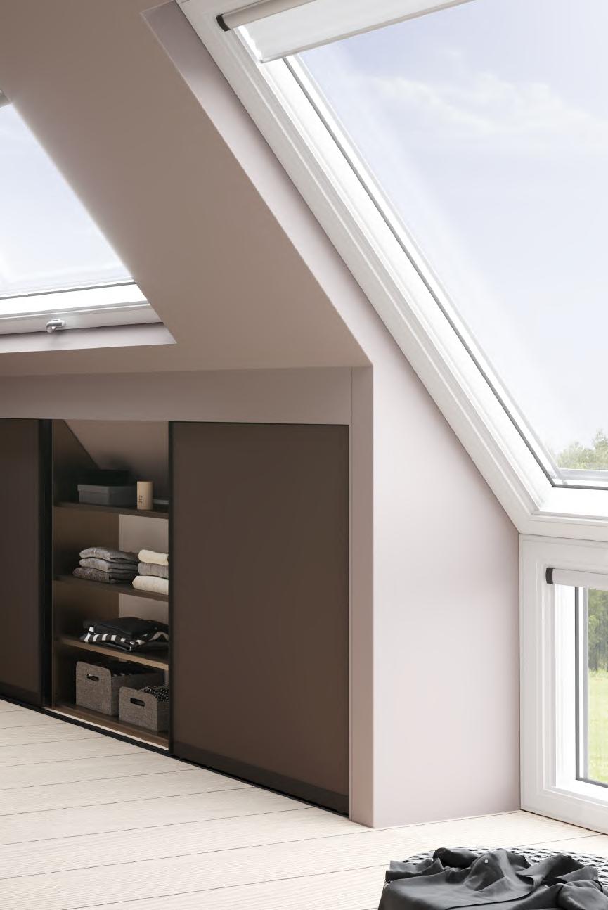 Use every angle according to your wishes. Both sliding and hinge doors can be fitted precisely under stairs and sloping ceilings. These provide extra space and aesthetically accommodate clothes, files, vacuum cleaners and more.