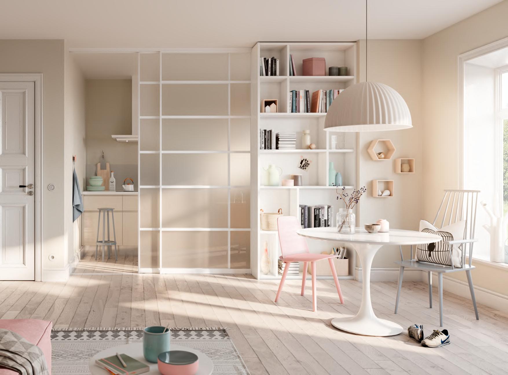 With raumplus partitioning systems and sliding doors, open-plan layouts can be effortlessly divided. Transparent or opaque, they ensure discretion, provide privacy or muffle kitchen smells and noises.