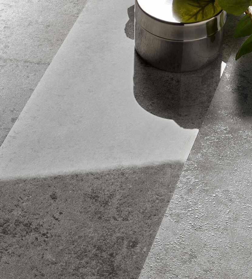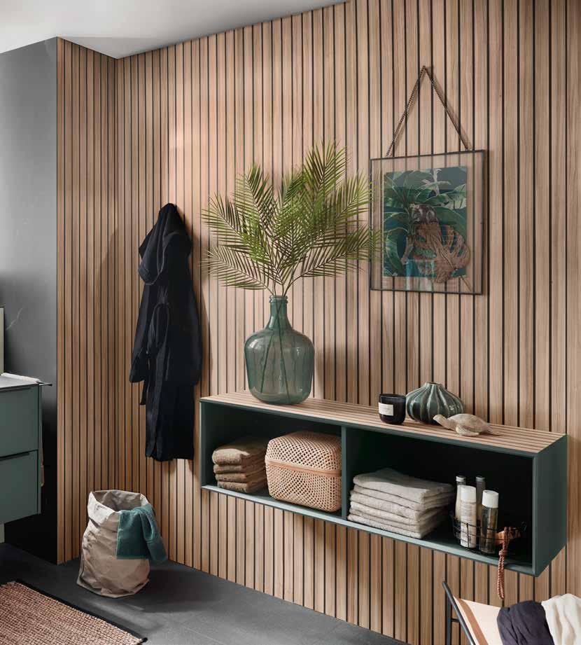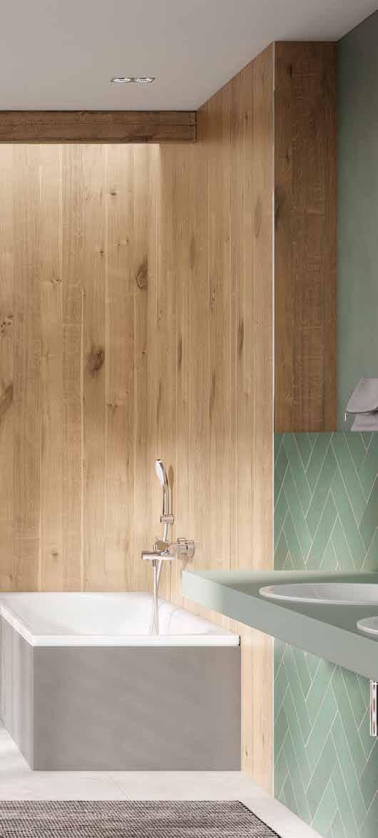 Die Dekore mit erhabener Struktur-Oberfläche bringen einen natürlichen Look ins Badezimmer. Durch ihre charakteristischen Prägungen sind die hochwertigen Oberflächen kaum von natürlichen Materialien wie Stein, Holz und Metall zu unterscheiden.