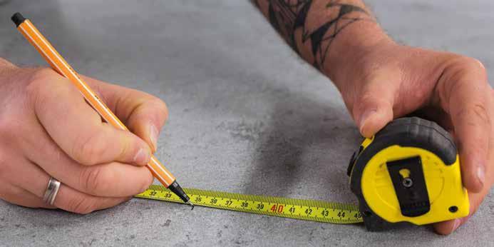 Be- und Verarbeitung direkt vor Ort mit handelsüblichen Werkzeugen –ohne schmutzige Fliesenarbeiten (siehe Seite 32)