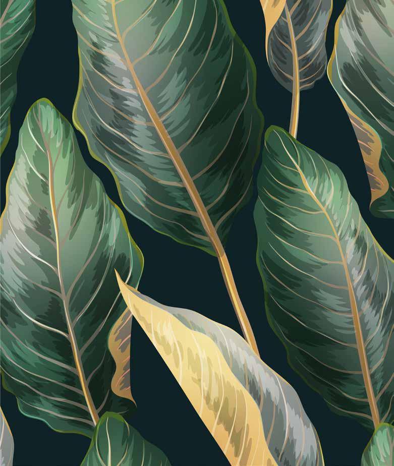 Individualdruck Tropenblätter, Gold-Grün (64) und Marmor, Perlato-Anthrazit (842)