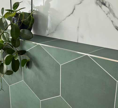 Marmor, Carrara-Weiß (883) und Individualdruck Fliese, Hexagon-Grün (S01)