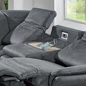 Hier sitzt die Zukunft – die Steckdose mit USB Anschluß immer griffbereit. Die Ablage für Getränke oder Snacks öffnen und Sie können den ganzen Abend sitzen bleiben! Da kann man es aushalten! Mehrpreis 425,- inkl. Kopfteilverstellung.