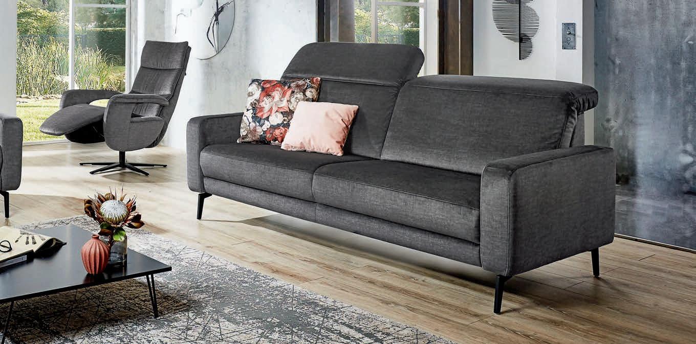Das volle Verwöhn-Programm –noch mehr Funktionen kann man in eine Wohnlandschaft fast nicht mehr einbauen. Auch in der Auswahl der Stoff- und Lederbezüge sind keine Grenzen gesetzt. Mit oder ohne Kontrastnaht,verschiedene Füße und natürlich fast zentimetergenau planbar.