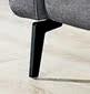 Die schlanke Armlehne lässt sich mittels eines Rasterbeschlages seitlich abknicken. Dadurch eignet sich das leicht angeschrägte Abschlussteil perfekt als Kopfstütze für ein kleines Schläfchen zwischendurch.