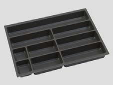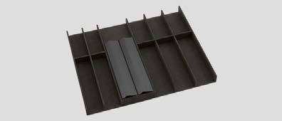 Planung: Passend für Schubkästen ab Korpusbreite 40 cm. Der Folienabrollereinsatz ZFRE1456IQ, der Messerblockeinsatz ZMBE1456IQ und die Kreuzeinteilung ZKE1456IQ kann in den U-Schaleneinsatz positioniert werden.