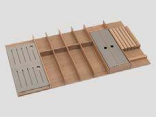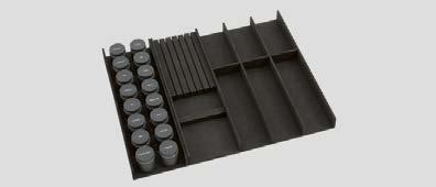 Planung: Für individuelle Planung kann das „Zubehör – Besteckeinsatz“ (Seite 18) auf die mit Zahlen 10/15/20 gekennzeichneten Felder positioniert werden.