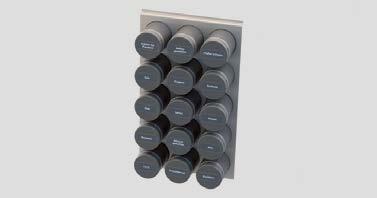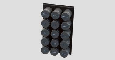 L x B x H: 37,2 x 15 x 4,3 cm 16 Gewürzdosen im Lieferumfang ohne Gewürze mit Gewürzdosenbeschriftung