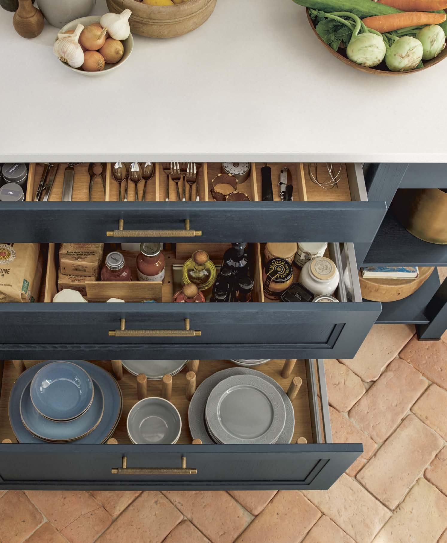 Die vielfältige Schubkastenausstattung aus nachhaltigen Materialen.