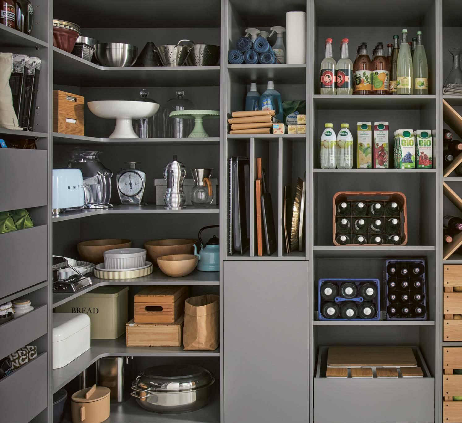 Lebensmittel, Küchenhelfer, Konserven und Getränke – all diese Dinge wollen möglichst ergonomisch, übersichtlich und platzsparend verwahrt werden. Am besten dort, wo sie das optische Gesamtbild des Wohnraums nicht stören: in der Speisekammer. Diese können Sie auf Basis der intelligenten und sehr vielfältigen Systemelemente in Ihrem Sinne gestalten. Mit offenen Regalböden für den nötigen Durchblick oder praktischen Auszügen für alles, was weniger ins Auge fallen soll.