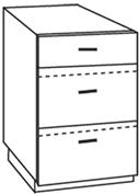 Ganz nach persönlichem Wunsch kann bei den 600 bis 1200 mm breiten Unterschränken zwischen Greifraumprofil, Schubkasten sowie Frontausklinkungen und -auszügen variiert werden. Zusätzlich ist