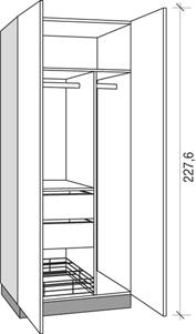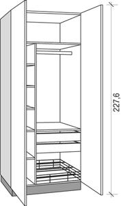 Maßänderung: Höhen-, Breiten- und Tiefenkürzung (ohne Mehrpreis) inkl. der dadurch verursachten Maßänderungen an Einlegeböden, Schubkästen, Auszügen und Fronten Berechnung pro Möbel Auch für Schränke mit Schubkästen und Auszügen anwendbar. Folgende Schranktiefen können mit Auszugssystemen versehen werden: 47,7 cm, 57,7 cm, 67,7 cm.