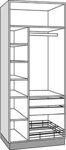 Der Schrankinnenraum kann auf Kundenwunsch geändert werden Der Schubkasten oder Auszug kann frei positioniert werden. Die Konstruktionsböden können ebenfalls frei positioniert werden.