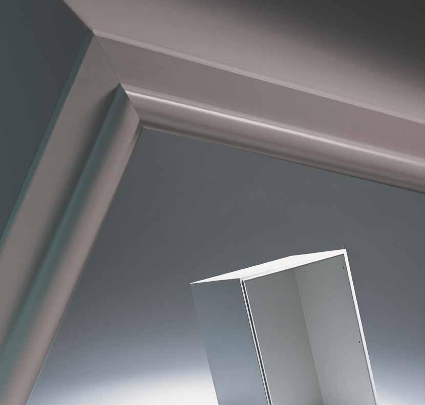 Die Konturkanten an Fronten, Wangen, Abdeckböden oder Seitenverkleidungen zeugen von Handwerkskunst in Perfektion. Diese Kantenvariante ist in vielen Oberflächen aus Kunststoff-, Lack- oder Furnier erhältlich.