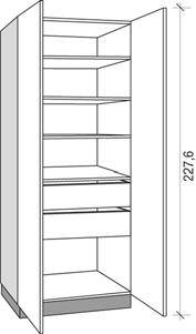 Höhen-, Breiten- und Tiefenkürzungen sind auch bei Schränken mit Schubkästen und Auszügen realisierbar.