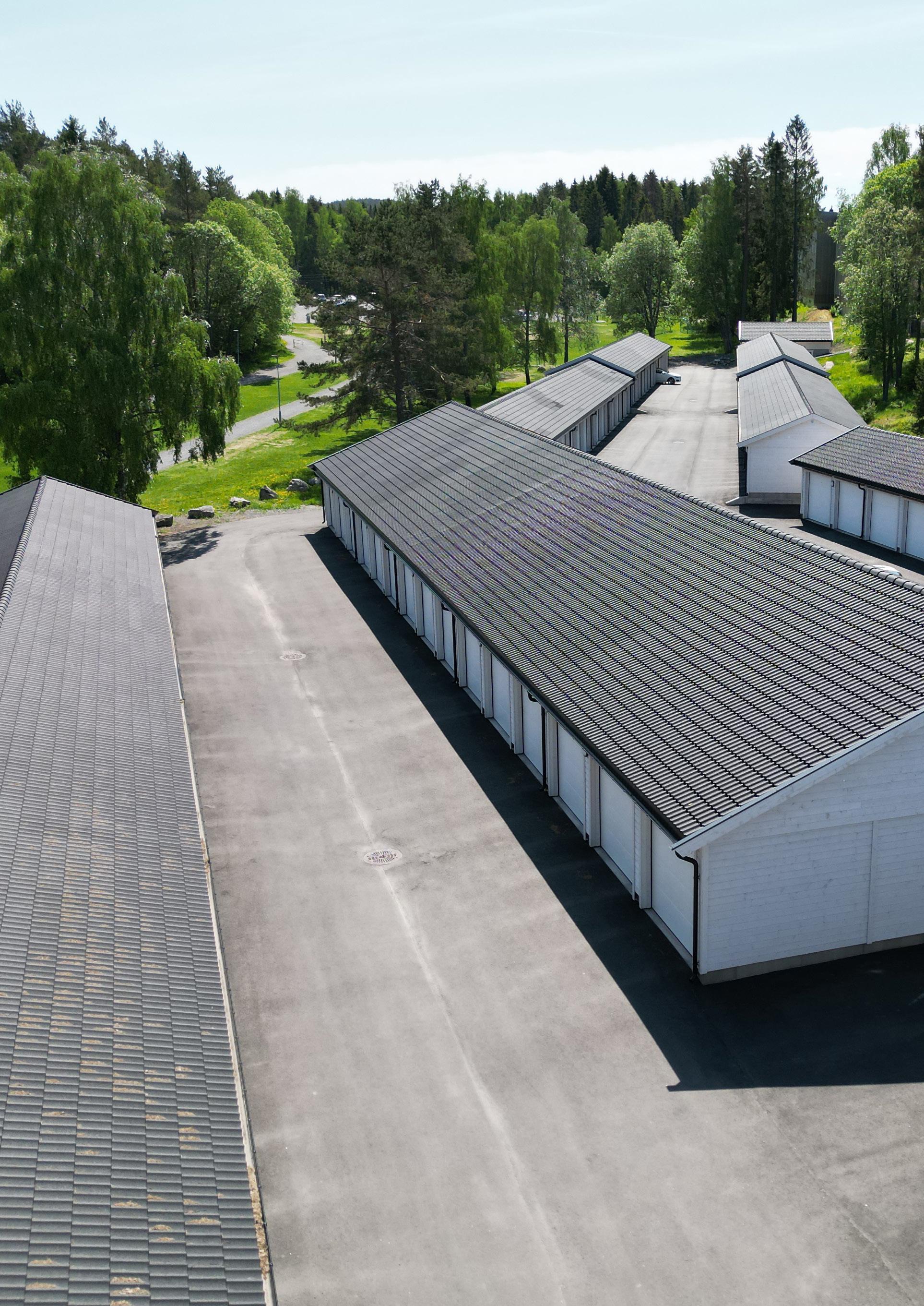 Innkjøring på begge langsider, leveres med skillevegg i møneretning.