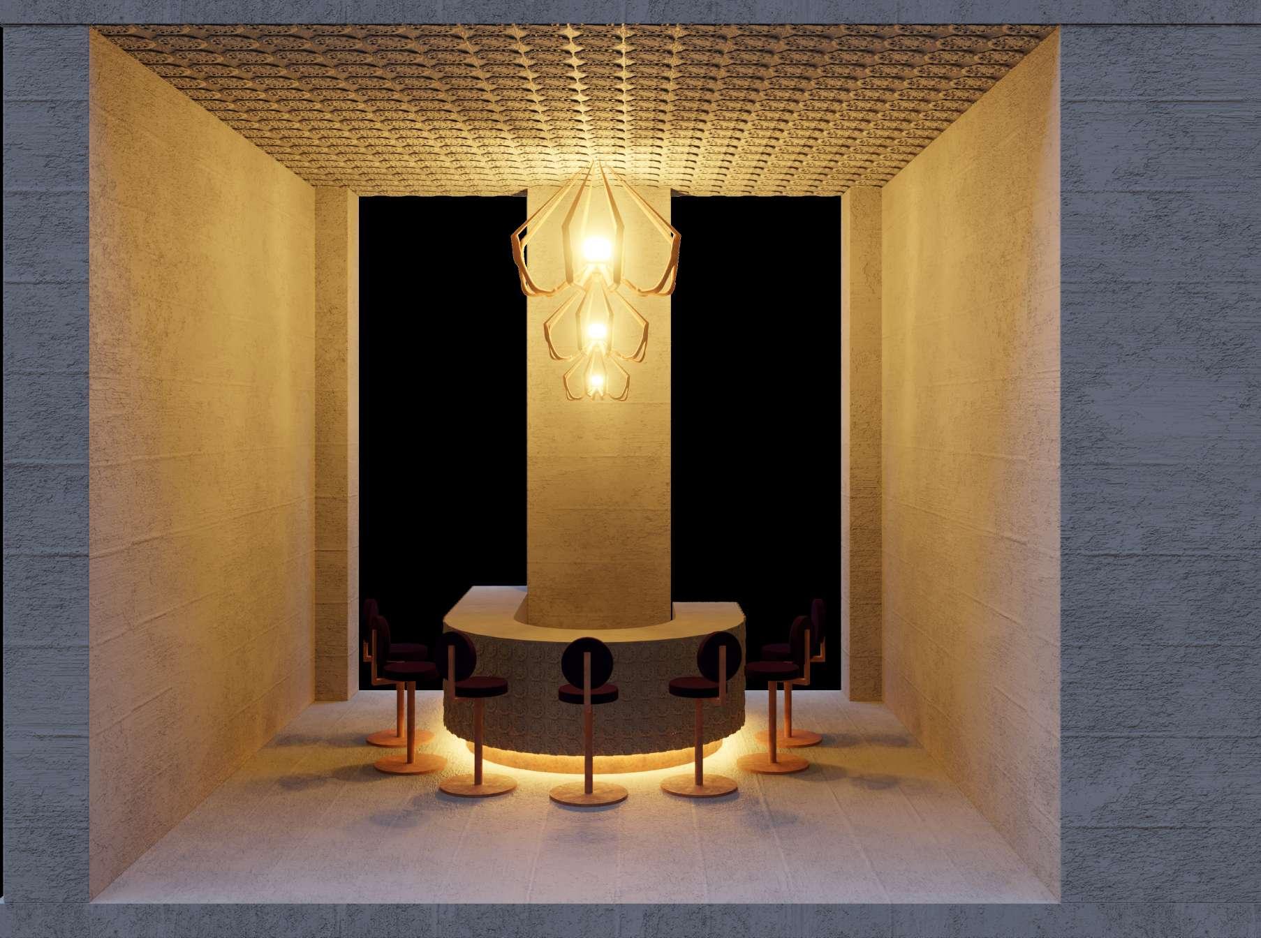Su lámpara, en homenaje a la artista y activista Louise Bourgeois, quiere ser ser un faro de esperanza para todas aquellas mujeres que viven enjauladas. La disposición de los taburetes (que representan a un grupo de mujeres) alrededor de un mostrador curvo (de nuevo como símbolo de feminidad) recuerda las miles de conversaciones previas entre mujeres para conseguir sus derechos.