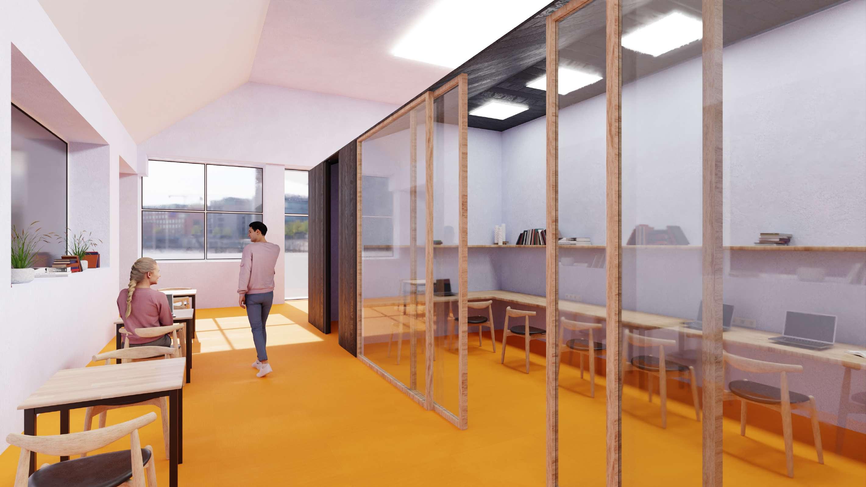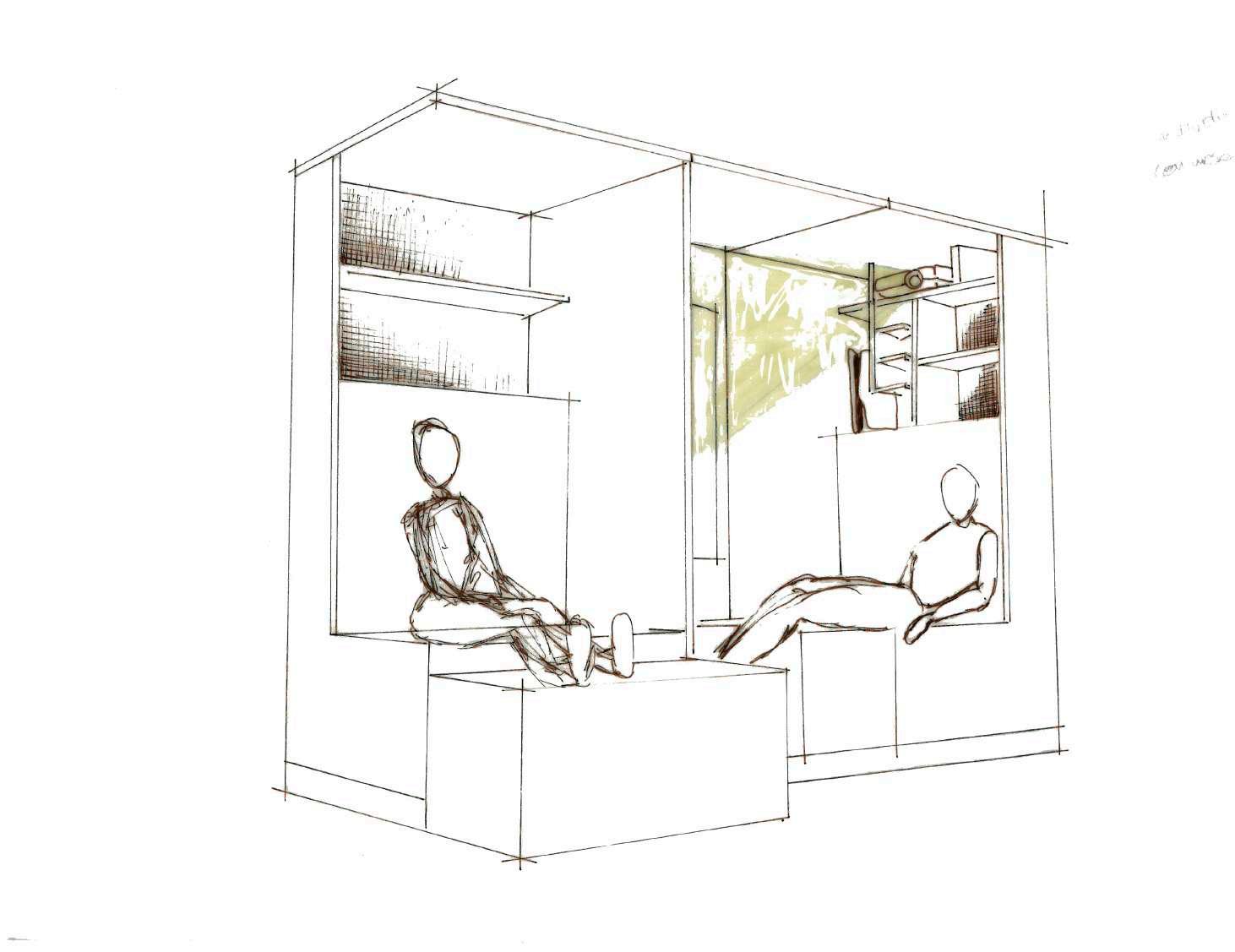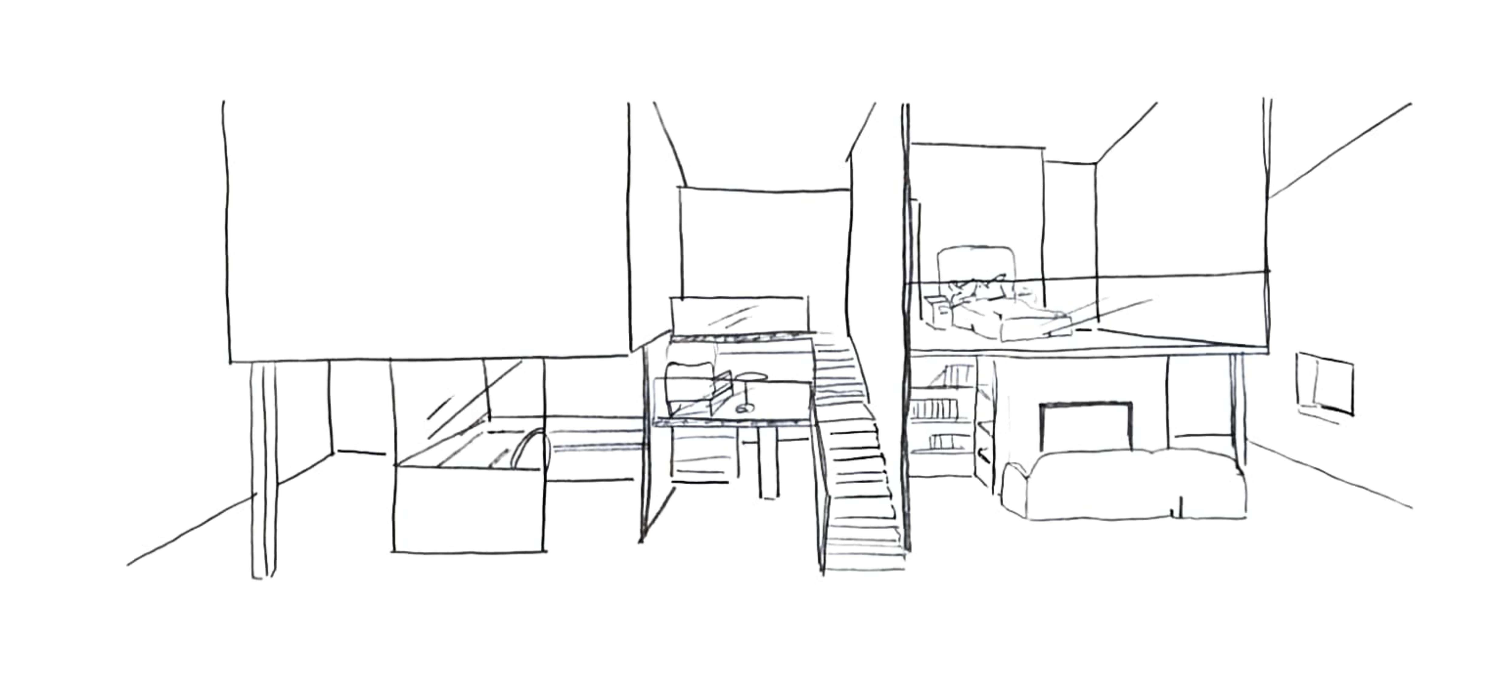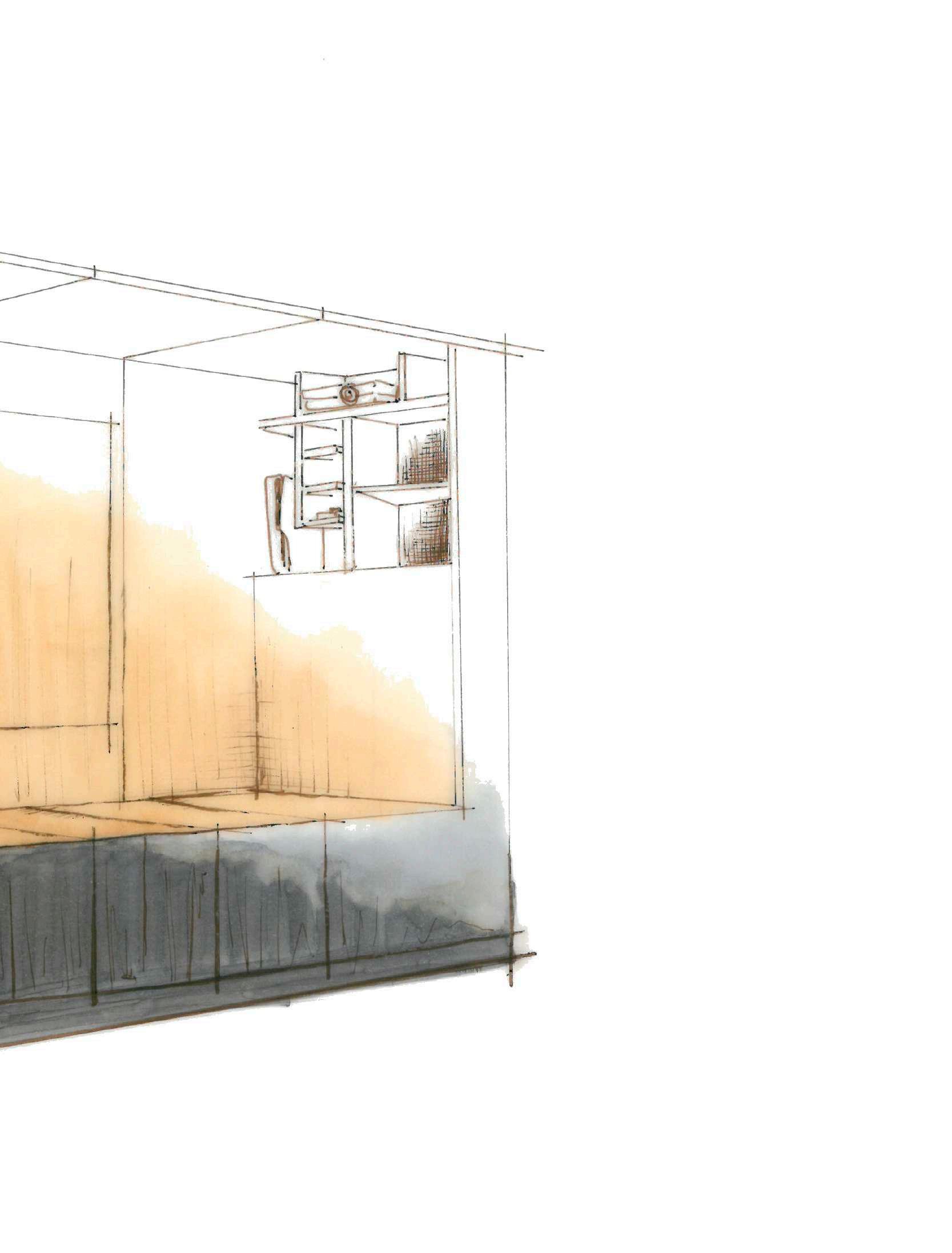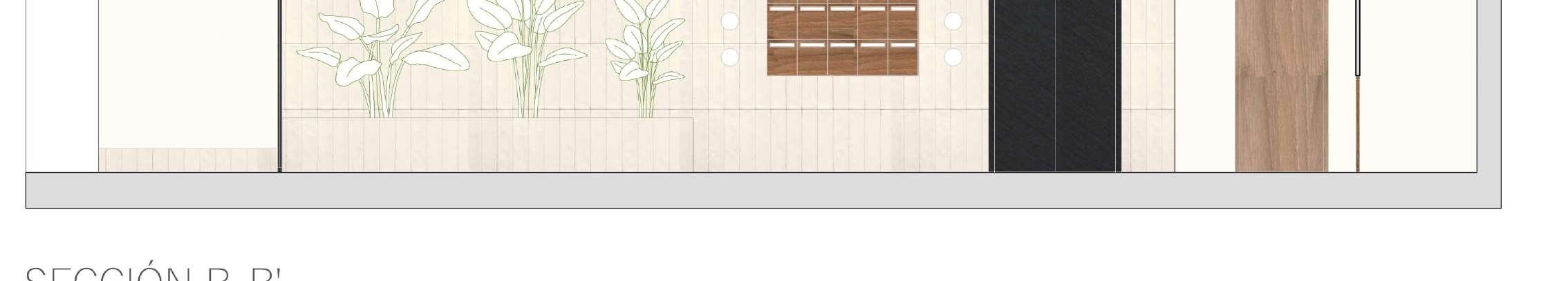 Para este espacio se opta por lineas sencillas donde los protagonistas son los materiales.