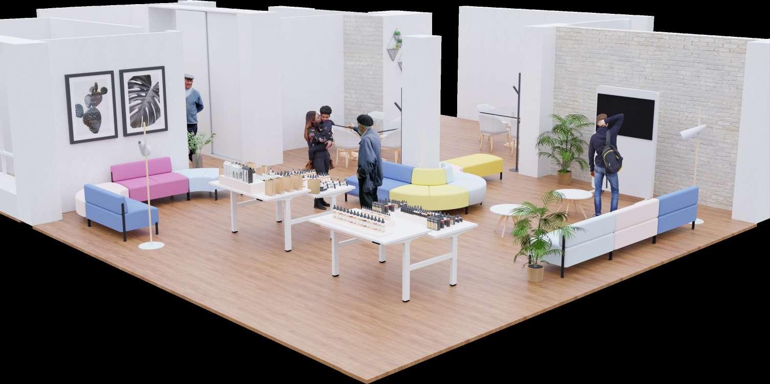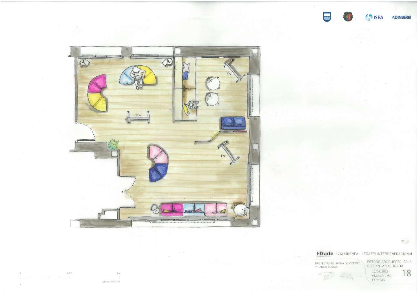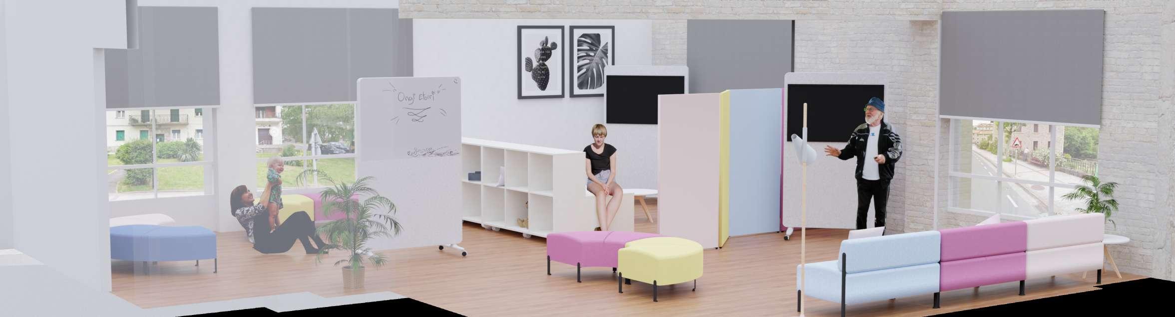 Con la idea de crear espacios intergeneracionales, en el cual se construye una ciudad solidaria entre las personas de distintas generaciones surgen los espacios llenos de color y flexibilidad gracias al mobiliario escogido.