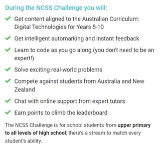 The NCSS Challenge is a programming competition open to all school students and teachers The Grok Academy team have been running coding competitions like the challenge for over 12 years.