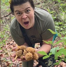 “I had hiked my rear end off for years, and I felt like a poser because I’m the ‘mushroom girl’ and I hadn’t found a morel,” she says. “I lost my freaking marbles. I was shaking because I’d never seen one. It was like it was some mythical mushroom, and I’d almost accepted defeat, like Gosh, you’re never going to find one. After that, of course, I found a ton; once you get the eye for them, you know.”