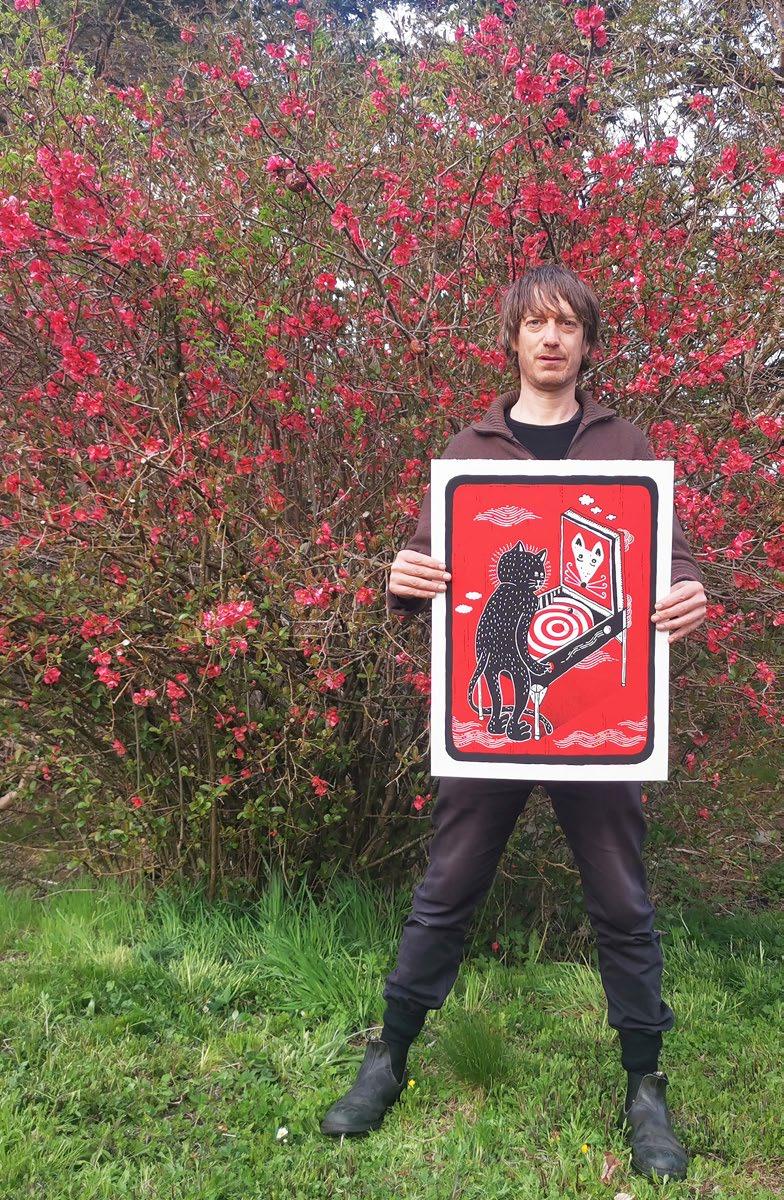 It doesn’t happen all that often, but for this edition of Garden Culture Magazine, we looked outside our small team for our cover design. The artwork you see on the front jacket of this issue is courtesy of Jacob Rolfe! Jacob is a Canadian artist, actor, and lover of the great outdoors. When he’s not creating art or appearing as a series regular on the Canadian sitcom Trailer Park Boys, Jacob can be found dodging housework on hiking trails or traveling the globe. Our executive editor, Catherine Sherriffs, caught up with Jacob to chat creative processes, mycophobia, and…cats.